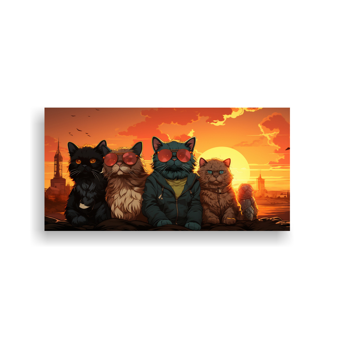Este cuadro de gatitos de California estilo cartoon con colores vibrantes como Coral y Verde Azulado se vería perfecto en la sala de estar, aportando un toque divertido y retro Combínalo con muebles en tonos neutros para resaltar su originalidad