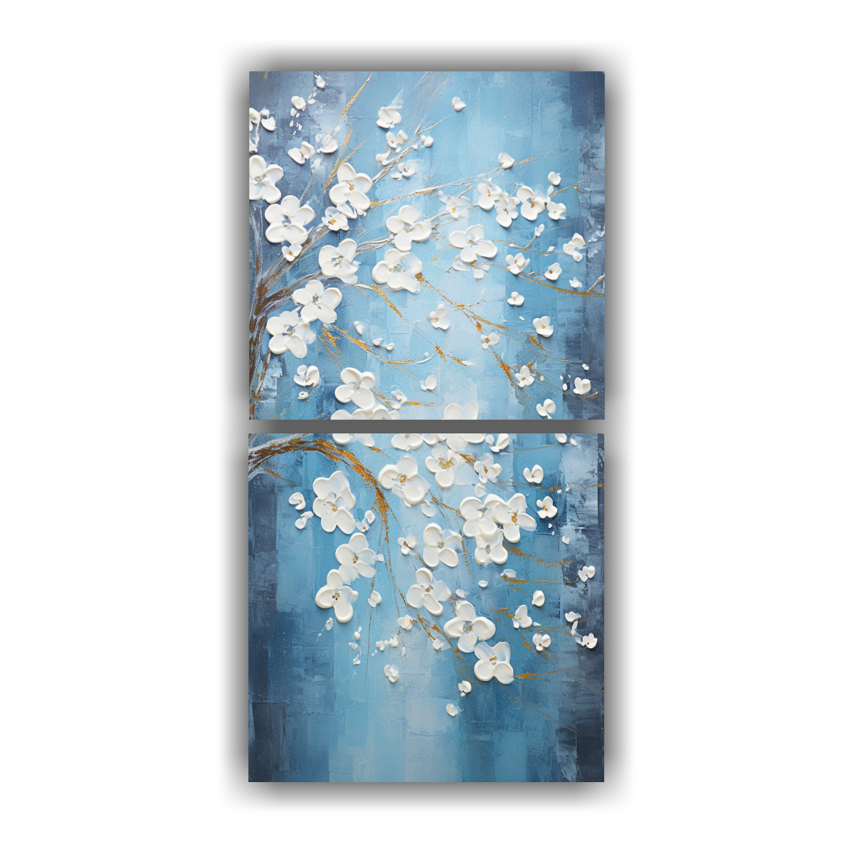 El cuadro ‘Cuadros Patron intenso Exposición con flores de cerezo azul en lienzo decorativo’ es perfecto para añadir un toque de elegancia y color a cualquier espacio Con colores como el azul marino grisáceo, turquesa y dorado, este cuadro impresionará a todos tus invitados Nuestros cuadros son fabricados con tela de alta calidad y montados en bastidores de madera, lo que garantiza durabilidad y resistencia Aprovecha nuestra entrega rápida y gratuita en Santiago y nuestros envíos express a regiones ¡Decora tu hogar con estilo y a precios económicos en DecoCuadros!