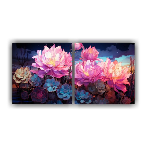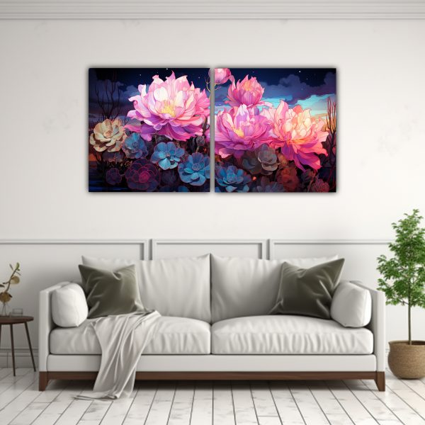 Cuadros Poderosos: Cactus En Morado Y Azul Atmosfera Neonoir