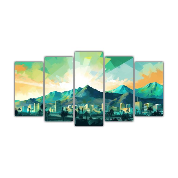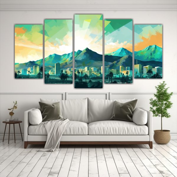 Cuadros Simetría Intensa Ciudad Santiago En Verde Y Turquesa