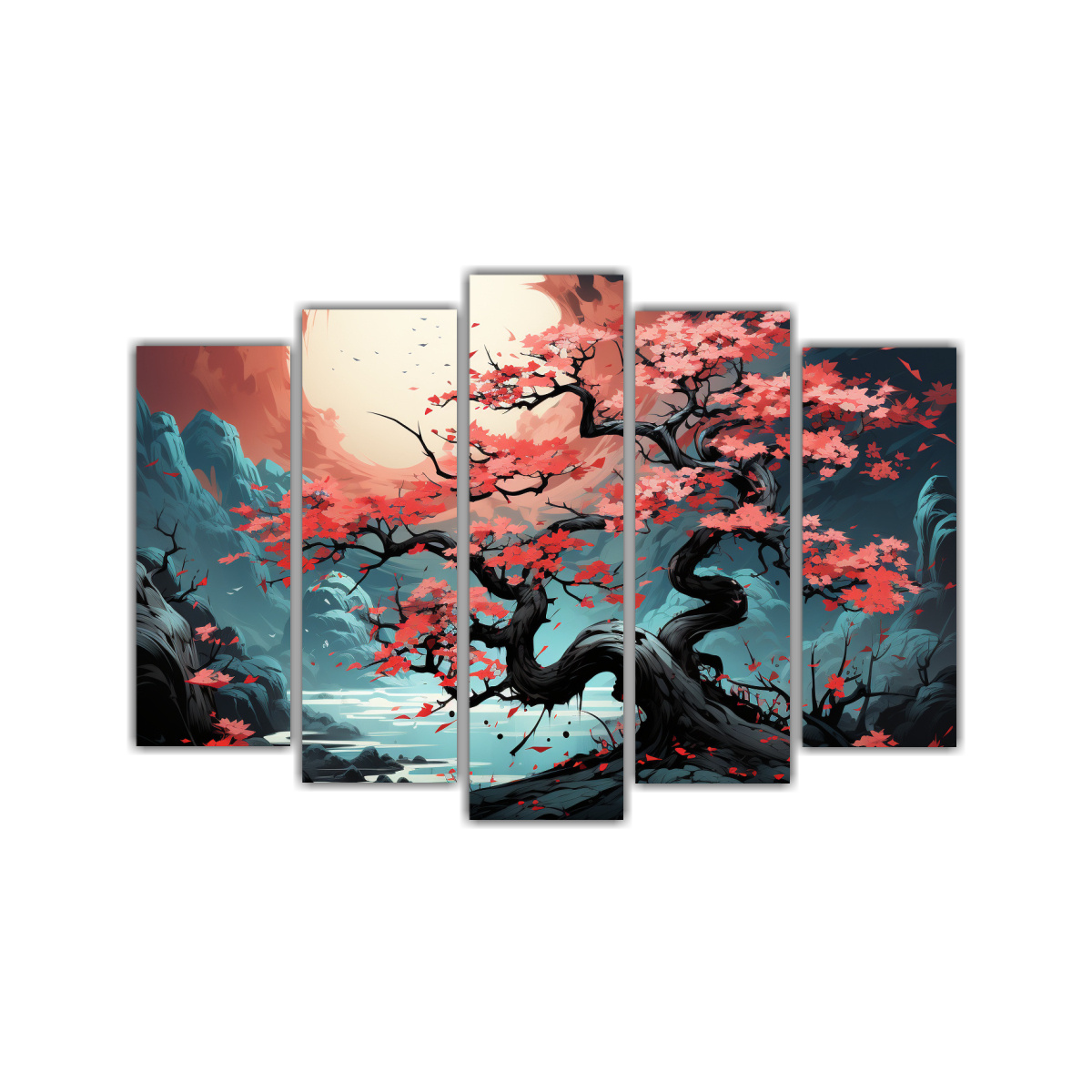 Renueva tu hogar con este set de 5 cuadros en tonos rosado claro, turquesa, carmesí y más Diseño exclusivo de DecoCuadros para añadir elegancia y estilo Aprovecha nuestra mejor calidad y precios económicos, envíos express a regiones