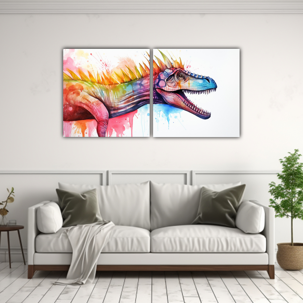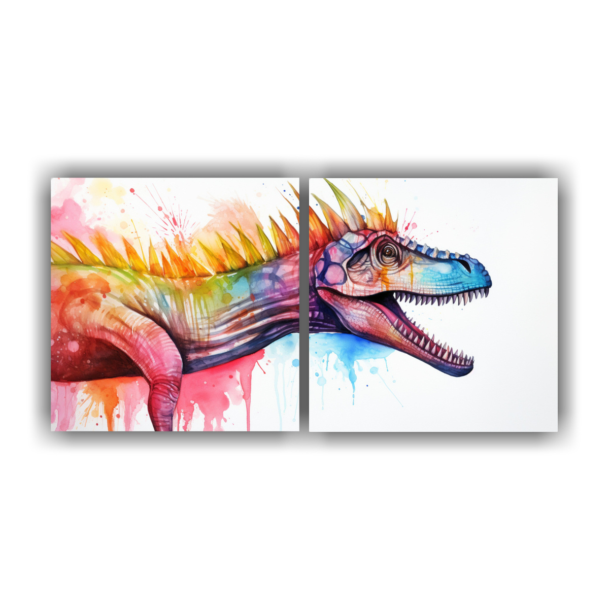DecoCuadros presenta el Set 2 Cuadros Hermoso Colores Vibrantes a Spinosaurus Colorful Watercolours Painting Style, con entrega gratuita y rápida en Santiago ¡Agrega un toque de color a tu hogar con diseños exclusivos!