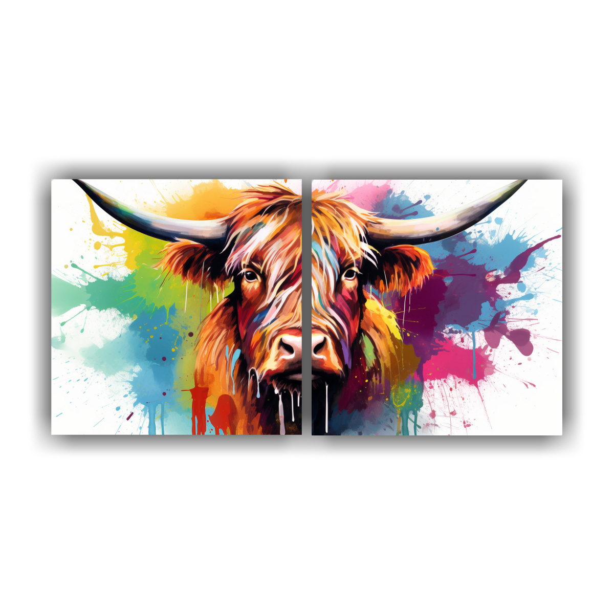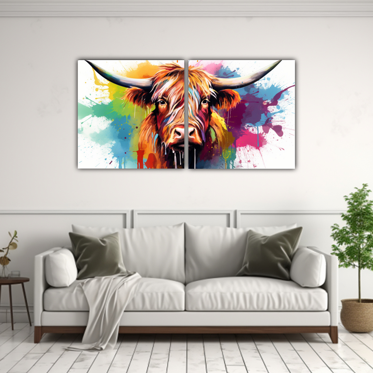 Cuadros Surrealistas De Alta Calidad: Vaca De Las Highlands En Colores Arcoíris Y Blanco