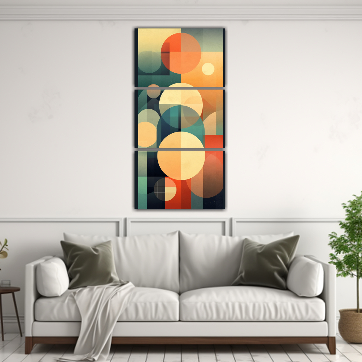 Para realzar la belleza de este cuadro, te recomiendo colgarlo en el centro de una pared blanca para que los colores solares muted resalten y se conviertan en el foco de atención de la habitación Combínalo con muebles de tonos neutros para lograr un ambiente armonioso y elegante