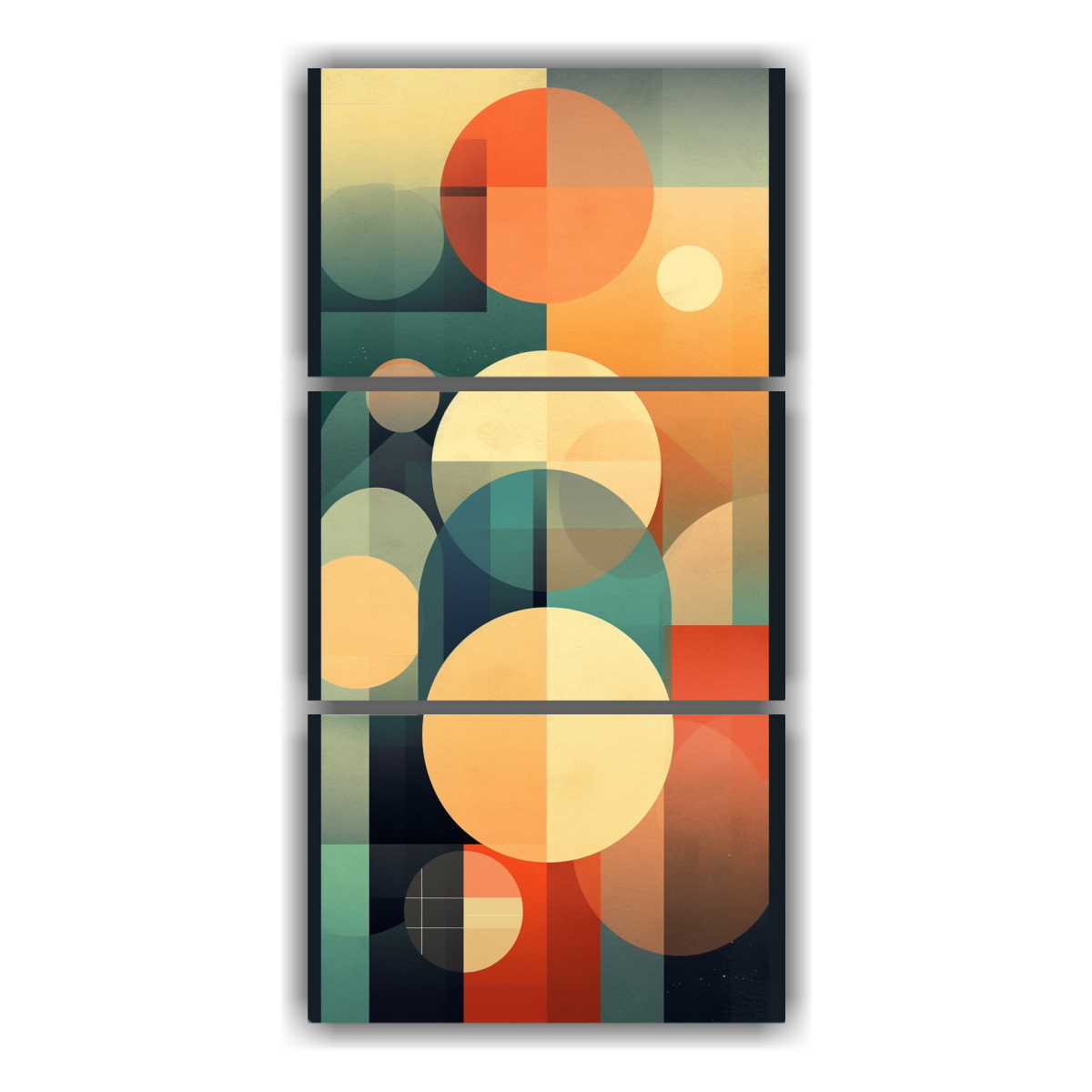 Renueva tu espacio con estos tres lienzos de tela con un patrón de colores solares en tonos suaves y relajantes Aporta un toque moderno y vibrante a tus paredes Ideal para salas de estar, dormitorios o espacios creativos Envíos express a regiones disponibles