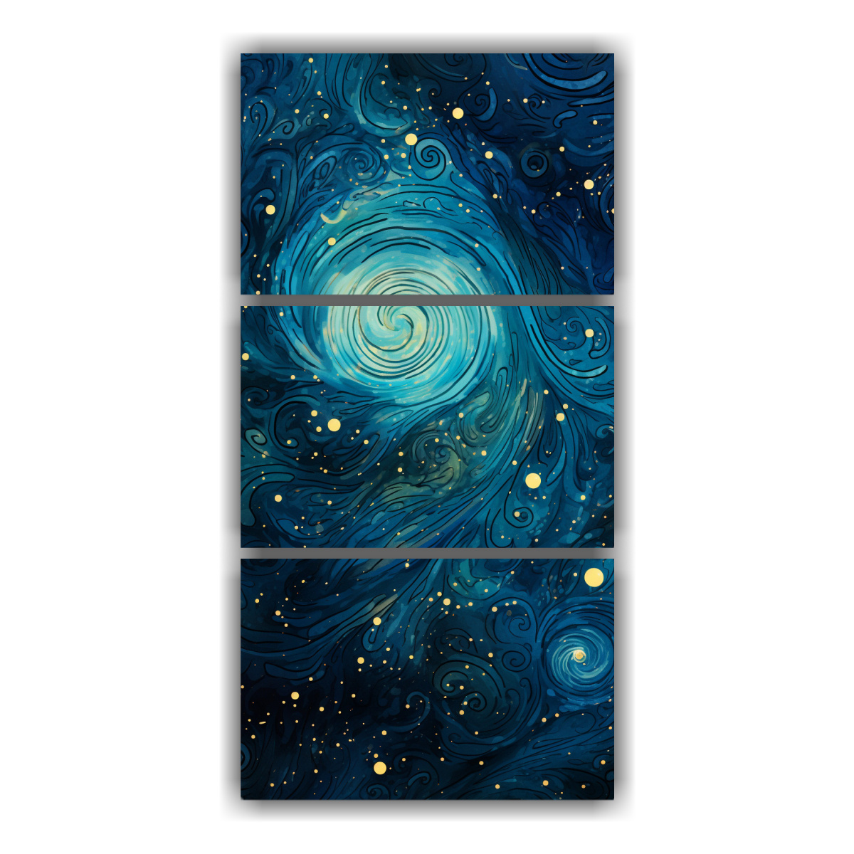 Decora tu hogar con estos tres lienzos de tela inspiración exposición con patrones abstractos cósmicos en azul profundo Envíos rápidos y gratuitos en Santiago, y express a regiones