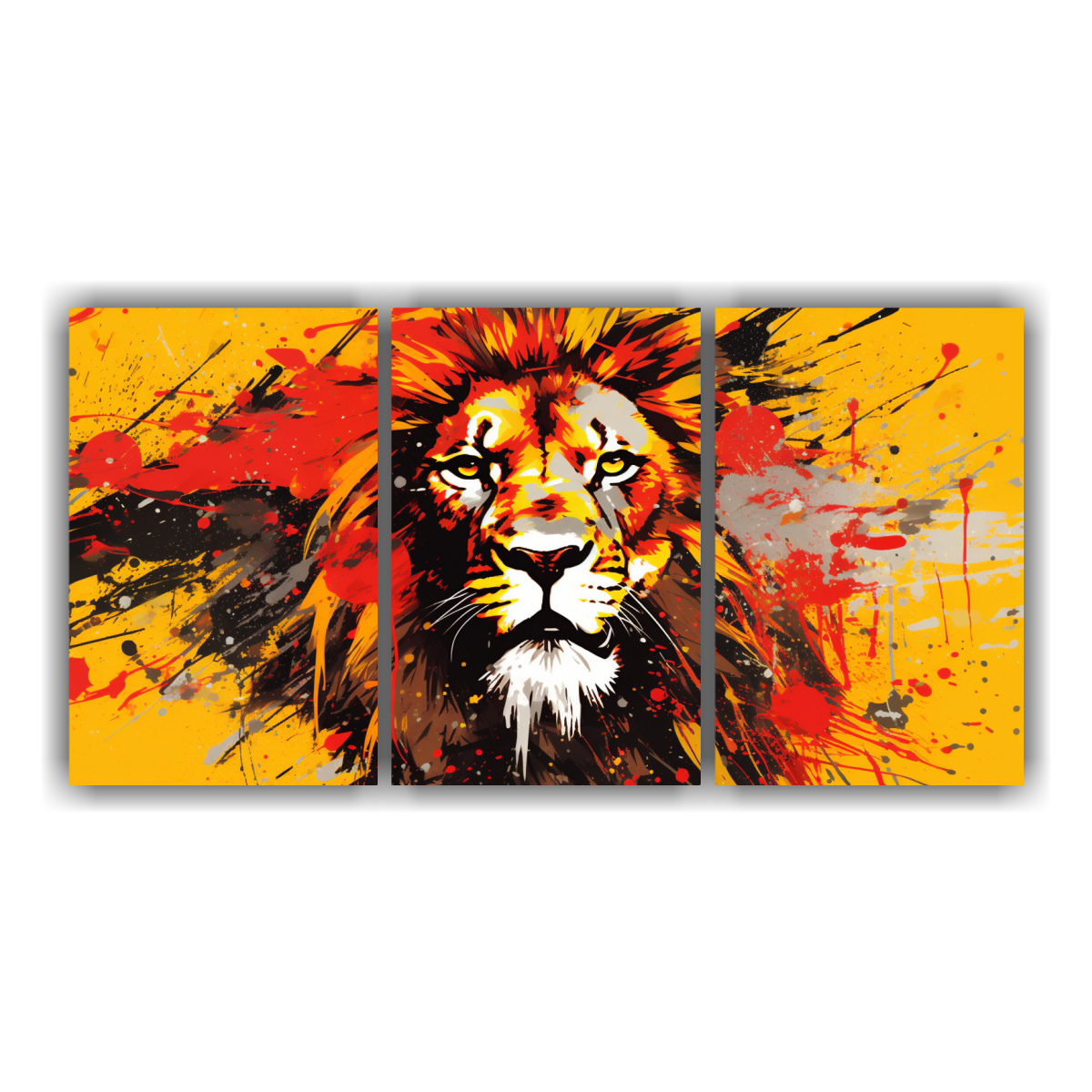 Este cuadro de tela con un león en amarillo y rojo es ideal para decorar salas de estar o espacios de trabajo modernos Combínalo con muebles en tonos neutros como blanco o gris, y añade cojines o accesorios decorativos en amarillo o dorado para lograr un ambiente armonioso y elegante