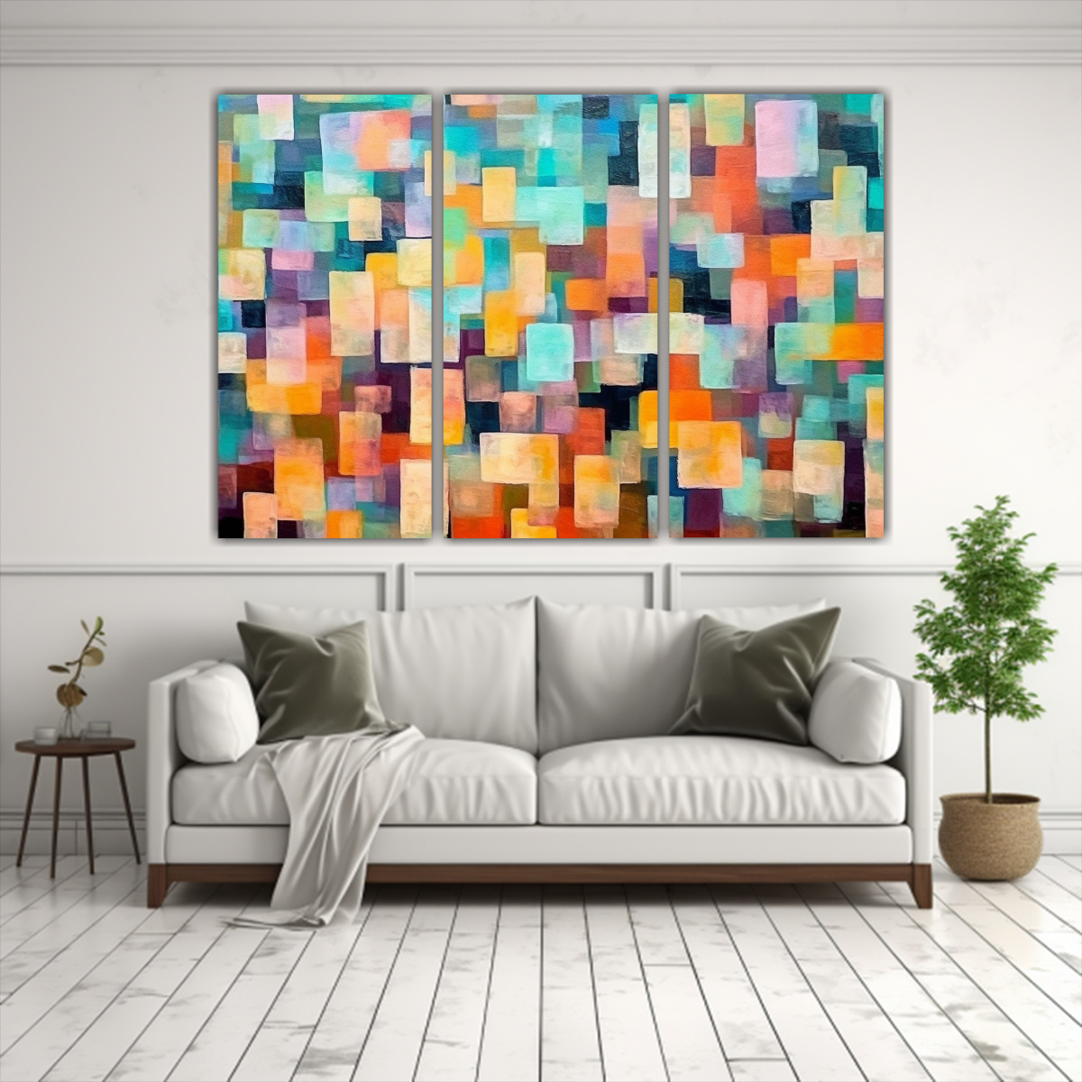 Cuadros Tela Canvas Colores Vibrantes Patrón Cuadrados Abstracto