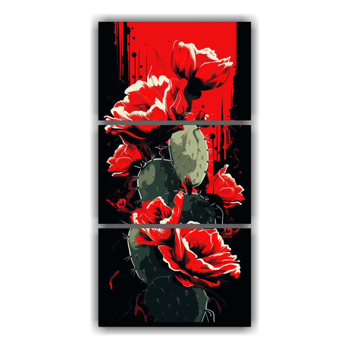 Añade un toque de elegancia y misterio a tu hogar con este set de 3 Cuadros Tela Canvas de Cactus en colores rojo y negro La combinación de colores como chocolate, gris y lila le darán un aspecto único a tu decoración Envíos express a todas las regiones ¡Decora con estilo en DecoCuadros!