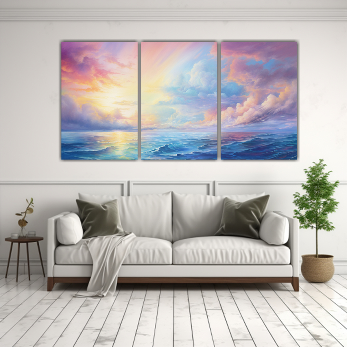 Cuadros Tela Canvas Simple Cielo Y Mar Con Arcoíris Colores Pastel Arte Decorativo