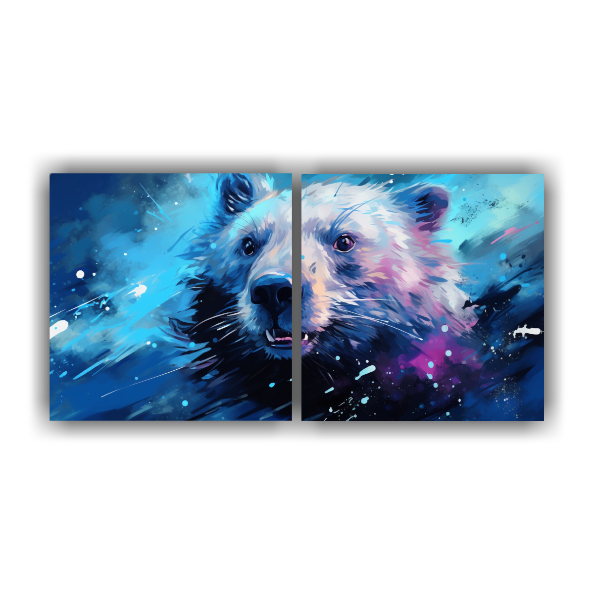 Cuadros Tela Dormitorio: Wombats En Colores Iridiscentes Y Azules, Neo Pop Art