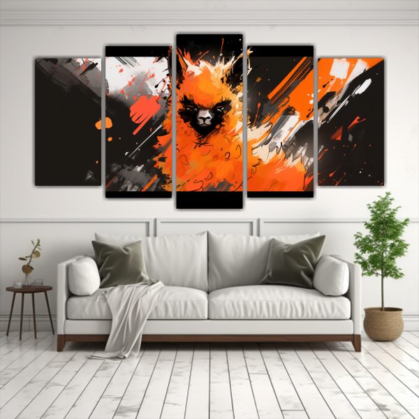 Este cuadro de Alpaca en tonos naranja y negro queda perfecto en una pared blanca para resaltar su diseño Combínalo con muebles en tonos neutros o grises para crear un ambiente moderno y sofisticado en tu hogar