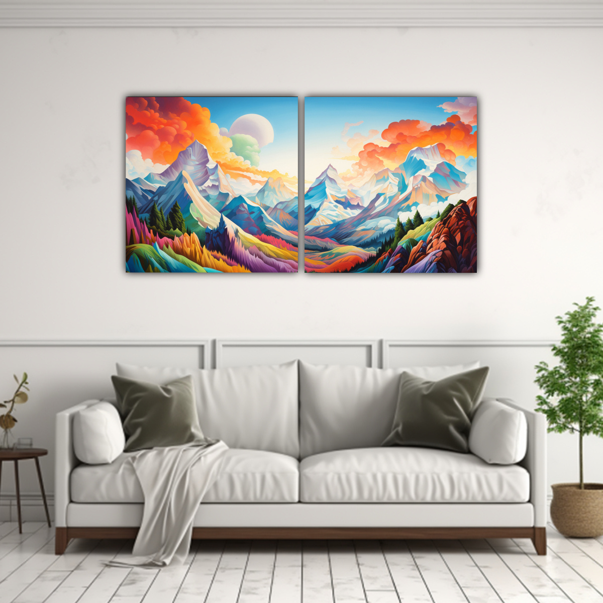 Este cuadro de tela con montañas famosas, arcoíris y tonos dorados es ideal para decorar tu sala de estar o tu estudio, creando un ambiente de inspiración y elegancia Combínalo con muebles de tonos neutros para resaltar su belleza y añadir un toque de sofisticación a tu espacio