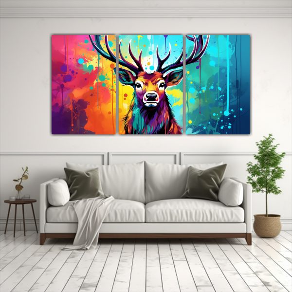 Cuadros Tela Impreso Pop Art Ciervo Colores Brillantes Neo Pop Art