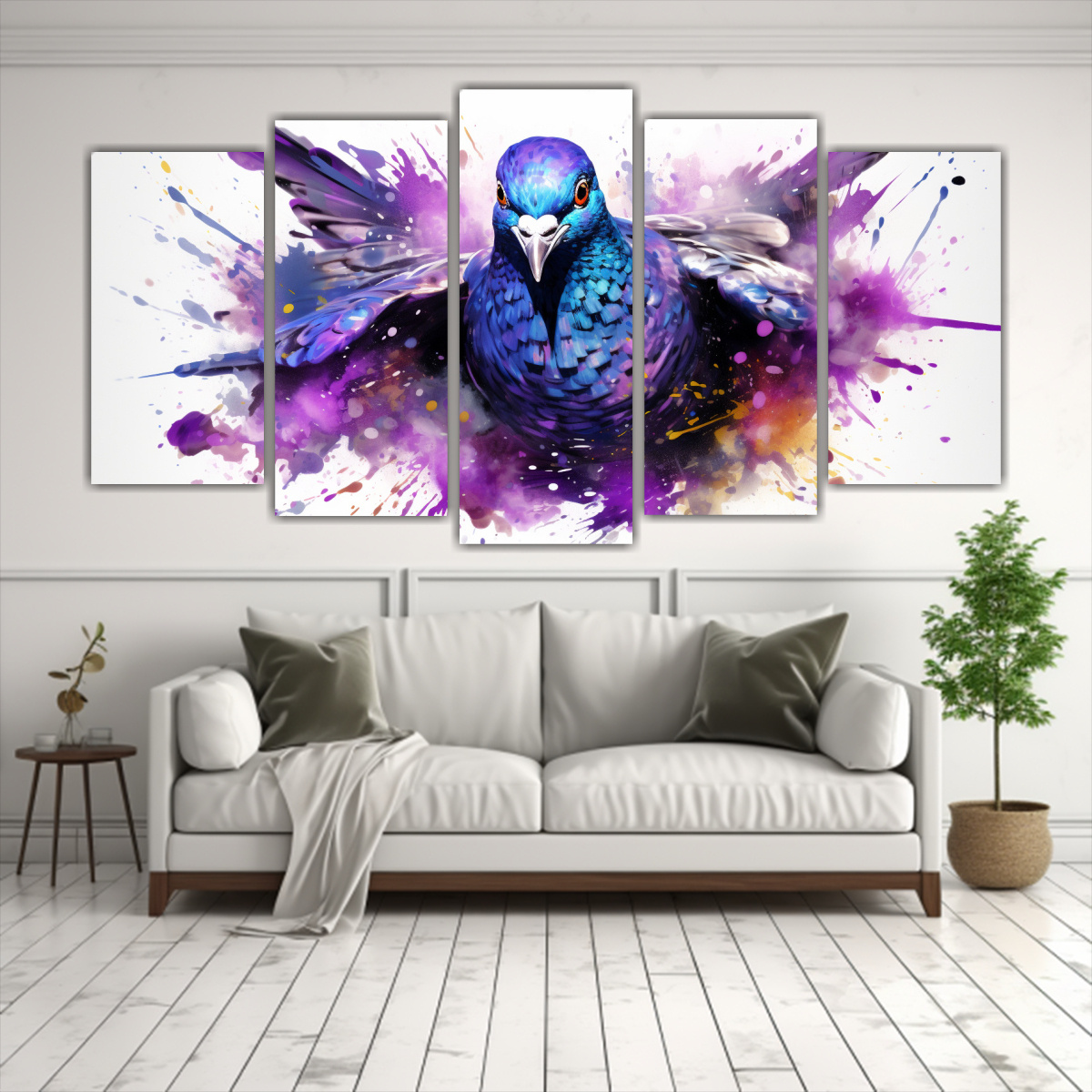 Renueva tu hogar con el encanto del Pájaro Acuarela y Colores Púrpura en tela de alta calidad Añade un toque de alegría y modernidad con este neo pop art a tu sala de estar, dormitorio o estudio ¡Combina perfectamente con tonos neutros y muebles de madera!