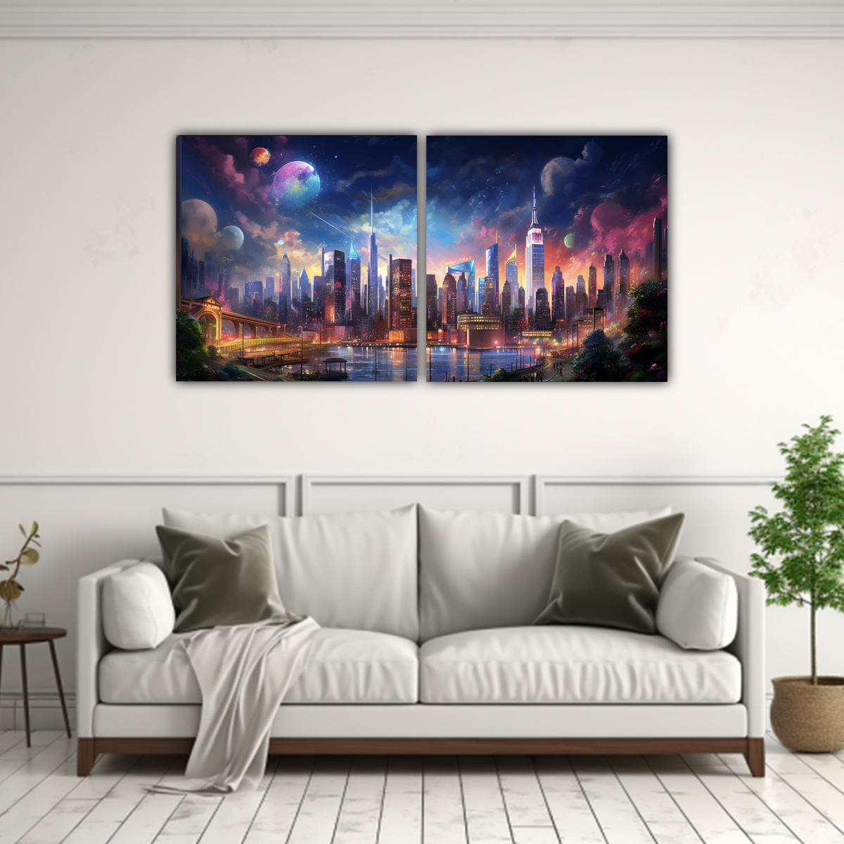 DecoCuadros te ofrece una amplia selección de cuadros decorativos de tela sublimada con diseños exclusivos, como el cuadro ‘Cuadros Tela Sublimada Colorida de Simplicidad en el paisaje urbano de Nueva York’ y ‘Dos Cuadros Tela Sublimada Simplicidad a new york cityscape but covered in colourful light’, que destacan por su alta calidad y precios económicos Los colores azul marino grisaceo, lila, gris, turquesa, dorado, coral y carmesí en el paisaje urbano de Nueva York le dan a estos cuadros un toque de color y elegancia