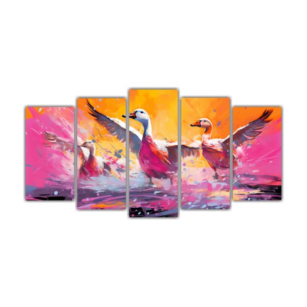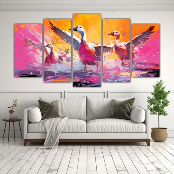 Cuadros Tema Alegría Gansos En Colores Naranja Y Rosa Arte Pop Neo.