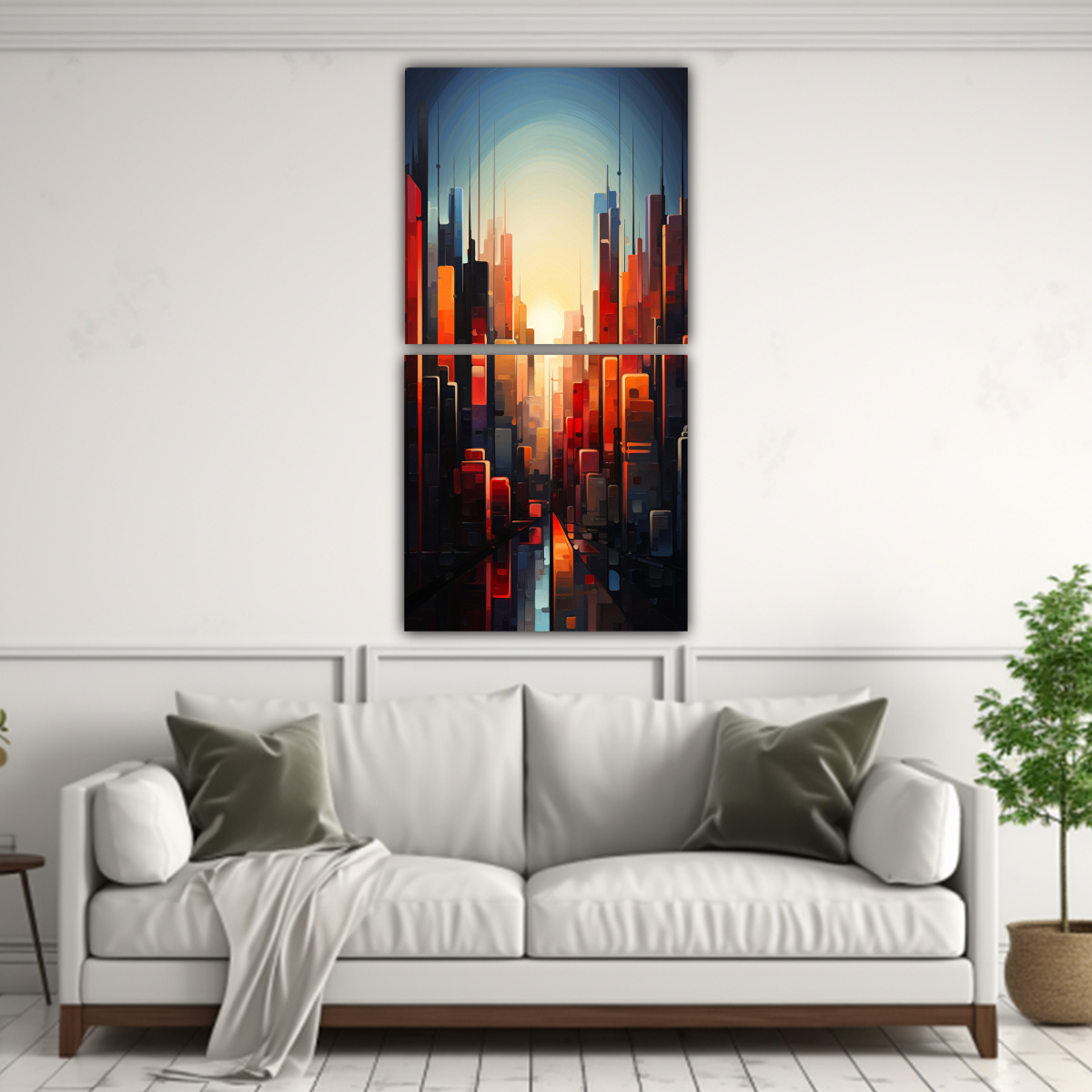 Este cuadro abstracto de la línea del horizonte de la ciudad Set 2 es perfecto para decorar tu sala de estar o dormitorio Combínalo con muebles en tonos neutros como blanco, gris o beige para crear un ambiente moderno y sofisticado También puedes colocarlo en tu oficina o estudio para darle un toque artístico y elegante ¡Atrévete a darle vida a tus paredes con este cuadro único y exclusivo!