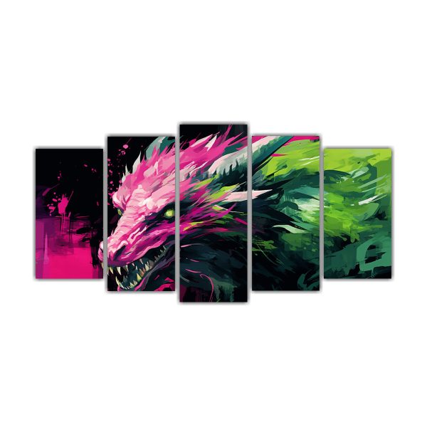 Cuadros Tonos Modernos Dragón Verde Y Rosa Neonoir Atmosfera Arte Decorativo