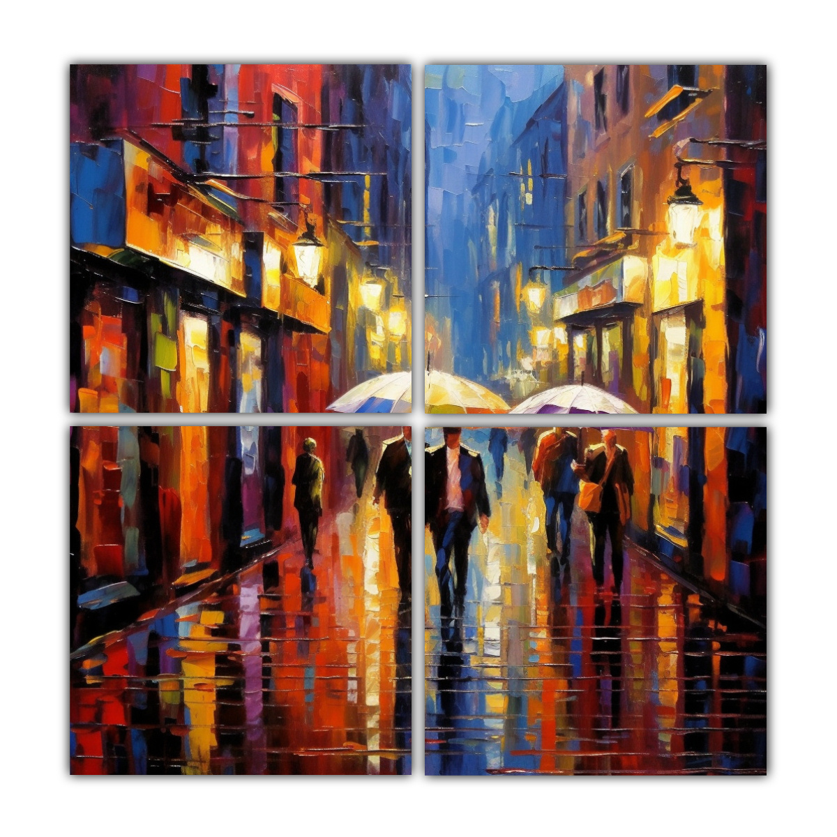 Nuestro cuadro ‘Cuadros Urbanos de Calidad con Motivo de Calle Lluviosa’ sería ideal para decorar un salón o una sala de estar Su diseño exclusivo y los colores disponibles le darán un toque moderno y sofisticado al ambiente Puedes colocarlo sobre un sofá o una repisa, creando un punto focal que captará la atención de tus invitados