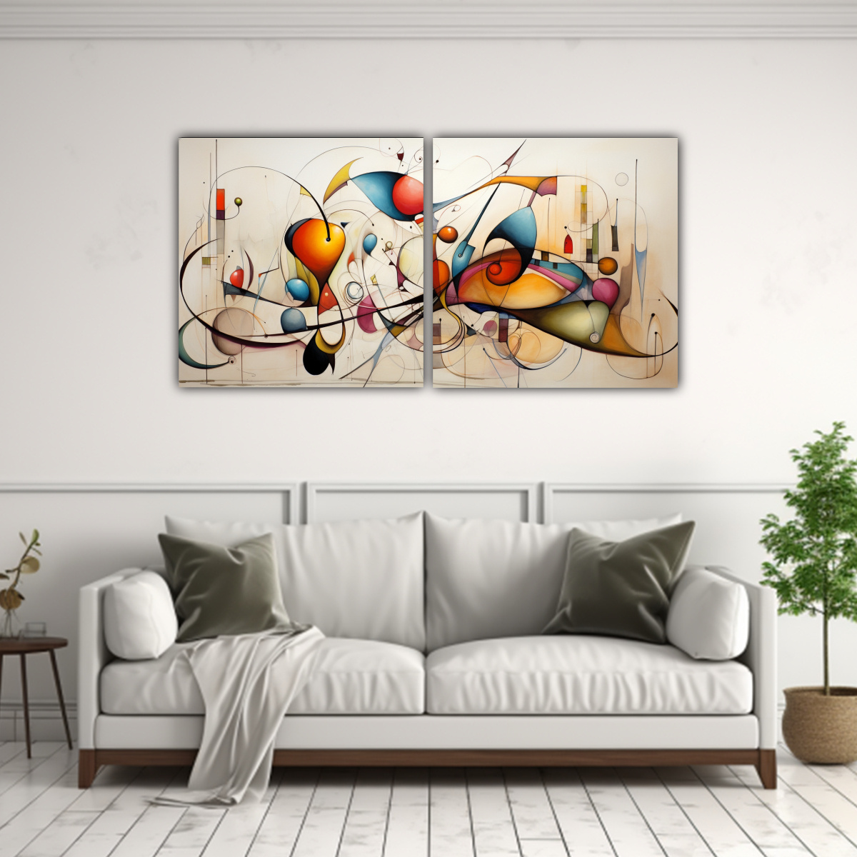 Coloca el cuadro abstracto acuarela reflejo en tu sala de estar para crear un ambiente moderno y sofisticado Combina este cuadro con muebles en tonos neutros como gris y beige, y agrega cojines en los colores del cuadro para lograr una armonía visual ¡Haz de tu sala un espacio único con este cuadro de diseño exclusivo!