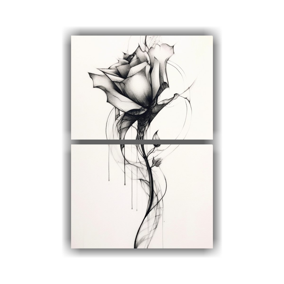 Cuadros Vanguardia Poder Tinta Sobre Papel En Línea Oblicua Flores.