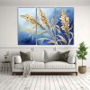Coloca el cuadro rectangular A Quinoa en colores oro y azul en tu sala de estar para crear un ambiente sofisticado y moderno Combínalo con muebles en tonos neutros y accesorios en dorado para realzar su belleza y aportar calidez a la habitación