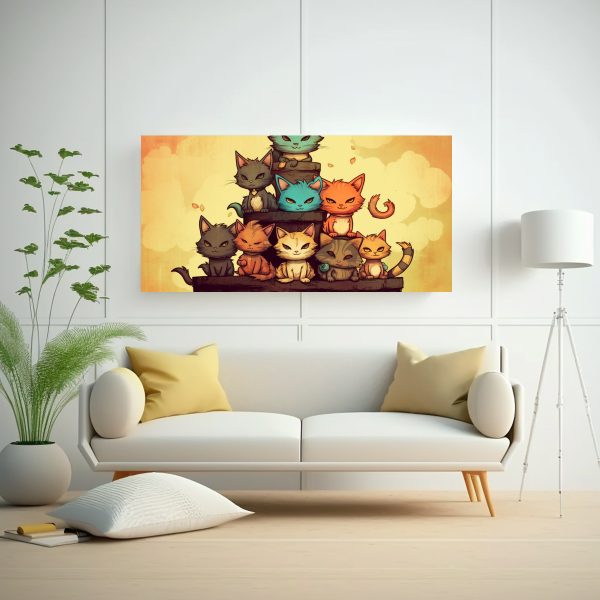 Coloca este cuadro vintage con gatos en una pared blanca para resaltar los vibrantes colores del diseño Combínalo con muebles en tonos neutros para crear un ambiente equilibrado y lleno de personalidad Perfecto para salas de estar o dormitorios modernos