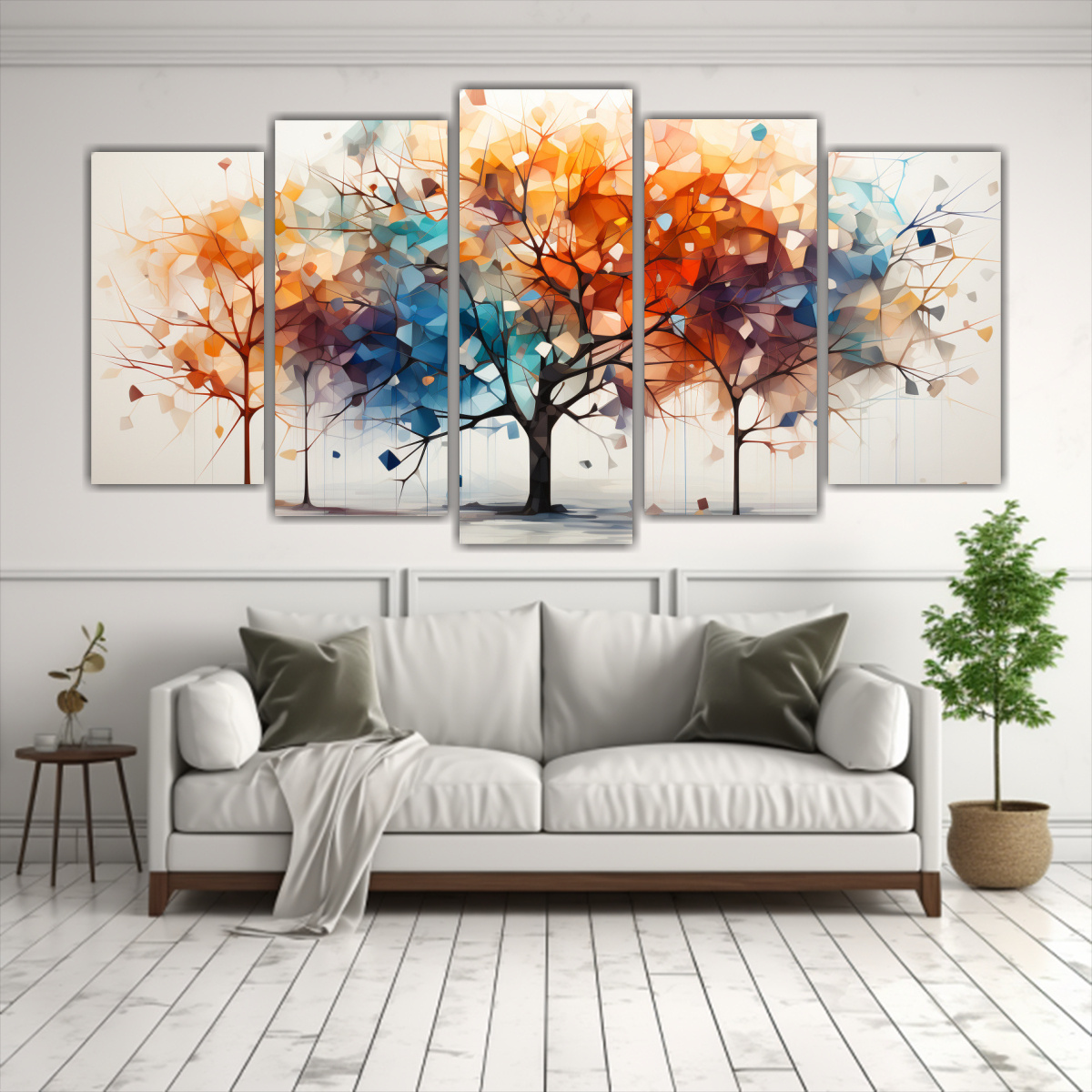 DecoCuadros ofrece cuadros de alta calidad con diseños exclusivos a precios económicos Nuestro cuadro vintage duradero con árbol geométrico luminoso combina colores como beige, carmesí, azul marino grisáceo, coral, gris, plateado, turquesa y menta Añade un toque de elegancia a cualquier espacio de tu hogar