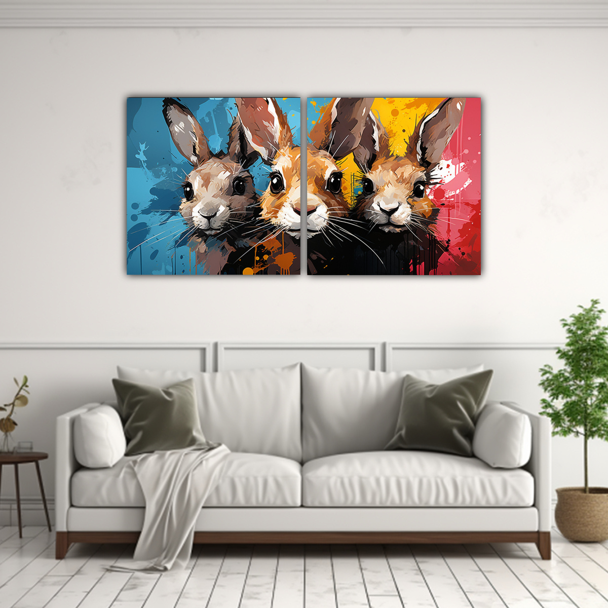 Cuadros Weasels Pop Art En Brillante Y Azul Set De 2 Telas