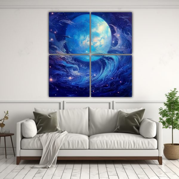Cuatro Arte Moderno Simétrico En Tonos Azules Del Espacio Exterior Colores Vibrantes Eth Decoración Pinturas