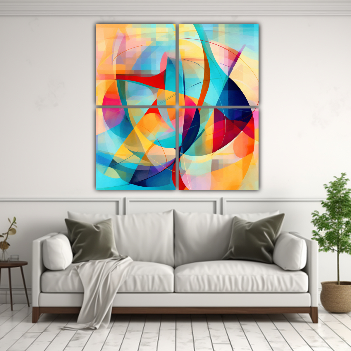 Coloca el Cuadro Cuatro Artes de Pared Forma Pintura Abstracta de Geometría Completa en tu sala de estar para crear un ambiente moderno y sofisticado Combina los colores con muebles y accesorios en tonos neutros para resaltar la belleza de la pintura Este cuadro también lucirá increíble en una oficina o estudio, agregando un toque de color y estilo a tu espacio de trabajo