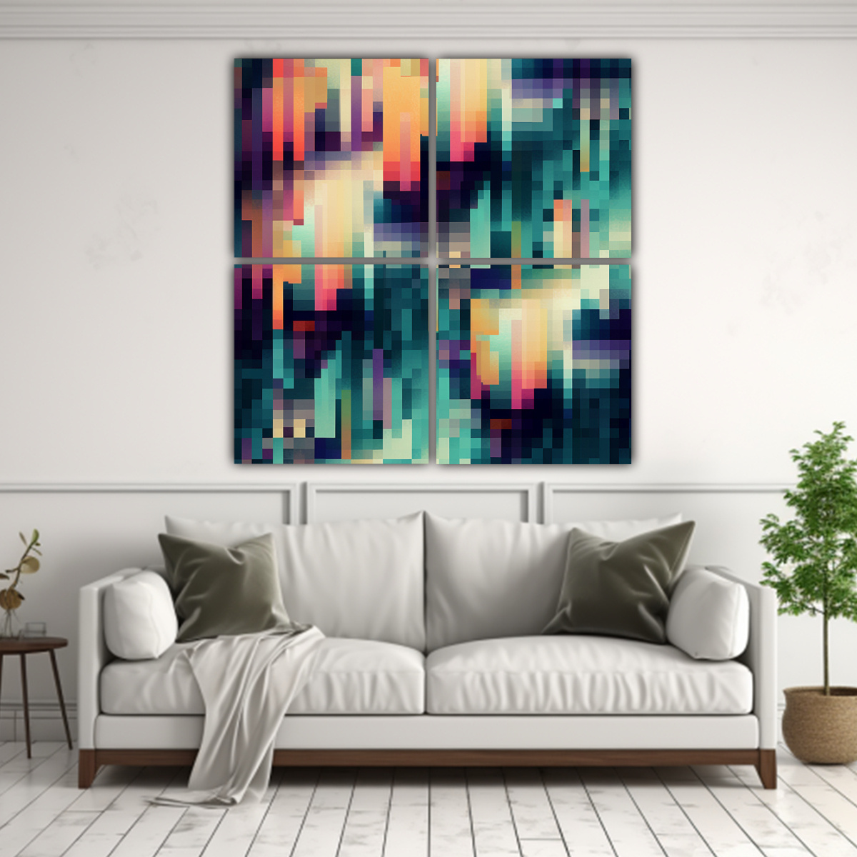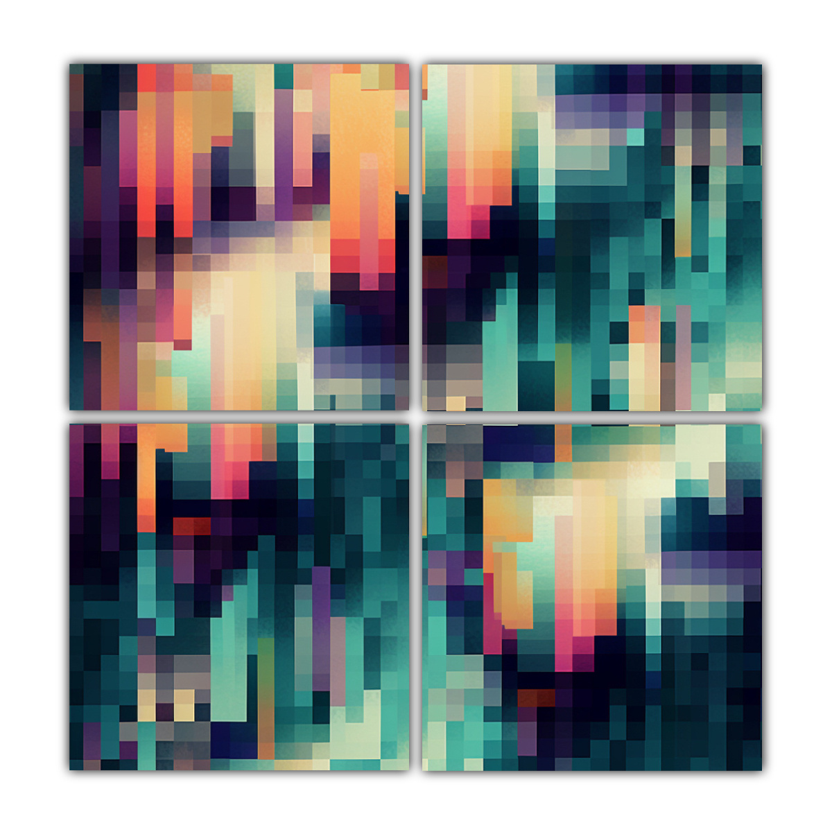 Coloca el cuadro ‘Cuatro Artes de Pared Impreso Detalle Diseño con estética de fallos’ en tu sala de estar para darle un toque moderno y sofisticado Combínalo con muebles de colores neutros y accesorios en tonos plateados y turquesas para una decoración con estilo
