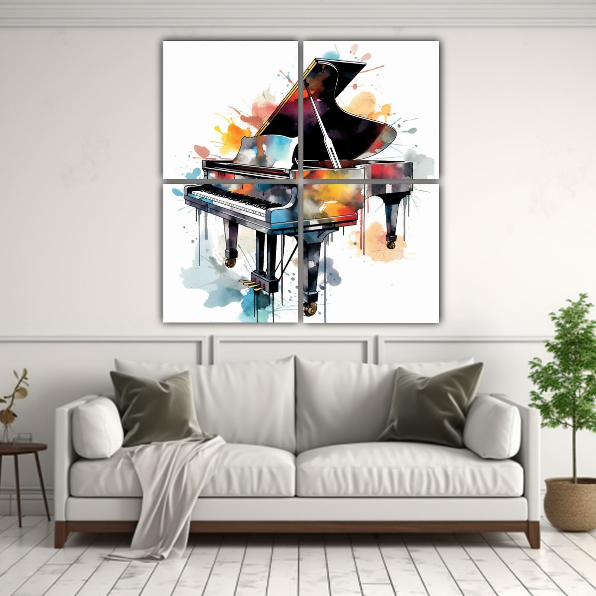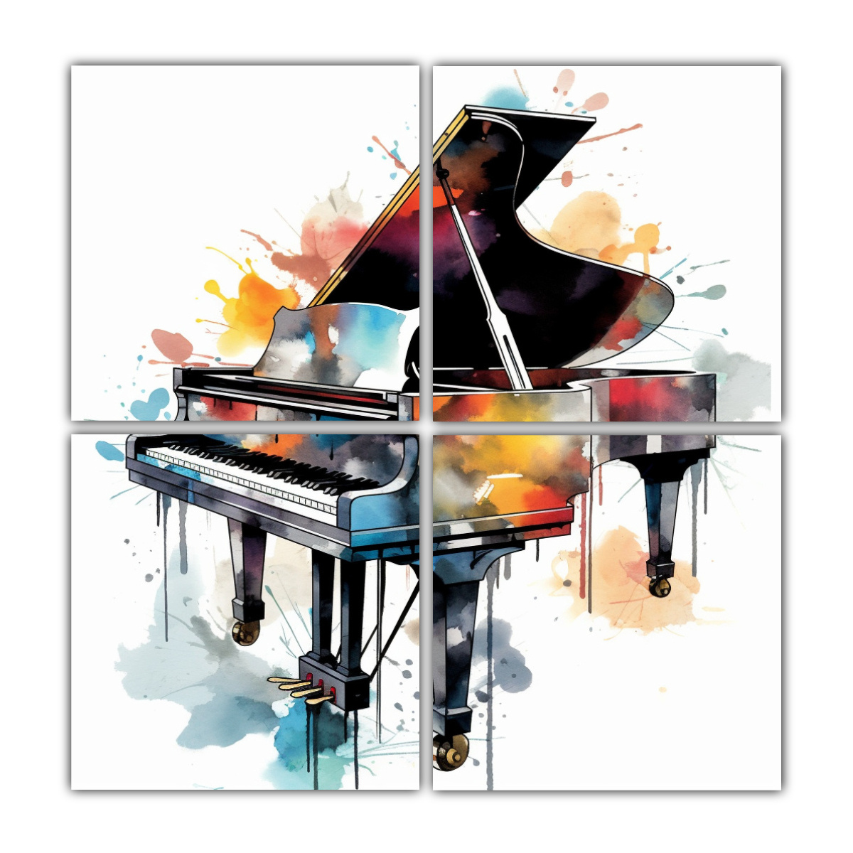 DecoCuadros te ofrece el cuadro Cuatro Artes de Pared Impreso Linda Piano Clipart estilo acuarela Fondo blanco Un diseño exclusivo, alta calidad y los precios más bajos del mercado Envío gratis en Santiago y envíos express a regiones