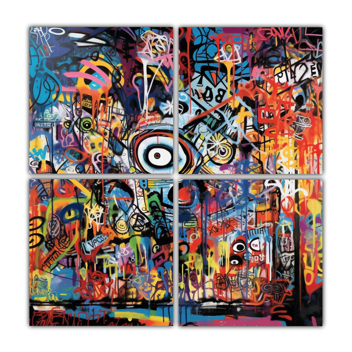 Cuatro Artes De Pared Inspiración Para Sala: Arte Gráfico Vibrante Y Dinámico