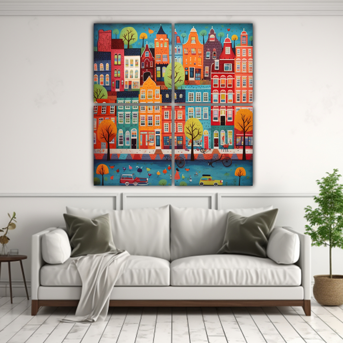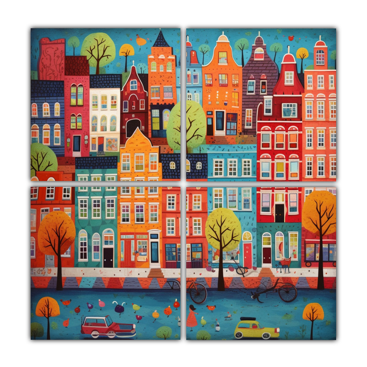 DecoCuadros te ofrece la mejor calidad del mercado a precios económicos Nuestros cuadros decorativos de Ámsterdam son perfectos para crear un ambiente encantador con colores como azul marino grisáceo, coral, plateado, turquesa, carmesí, gris, dorado y menta