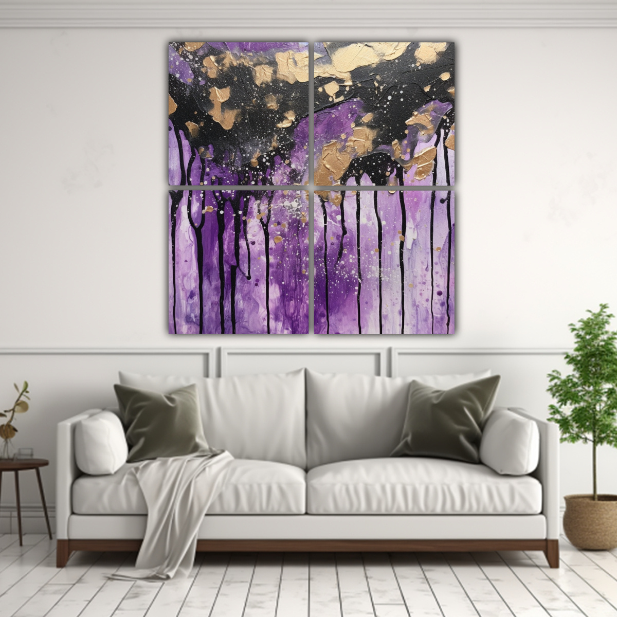 Este cuadro sería ideal para decorar la sala de estar o el dormitorio Combínalo con muebles en tonos neutros como blanco o gris claro para resaltar los colores vibrantes del cuadro Además, puedes agregar cojines en tonos plateados o lila para complementar la decoración ¡Añade un toque de brillo y originalidad a tu hogar con este cuadro exclusivo!