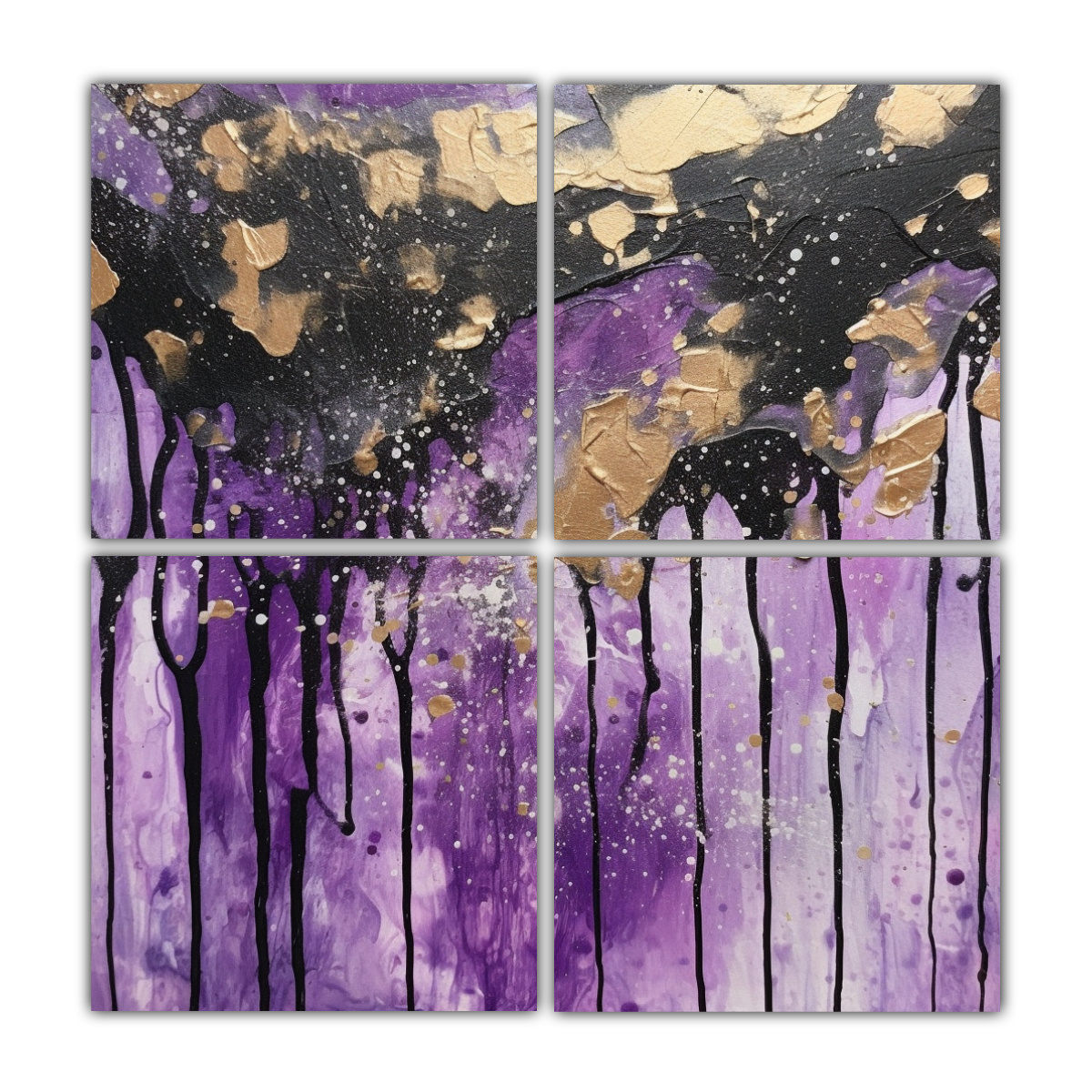 El cuadro ‘Cuatro Composición Alta Calidad Originalidad Fondo abstracto estilo brillo pinturas decorativas’ es perfecto para añadir un toque artístico y moderno a cualquier espacio Su diseño exclusivo y la combinación de colores gris, azul marino grisáceo, plateado, índigo y lila, le darán un estilo único a tu hogar La calidad de impresión en tela y el bastidor de madera garantizan una larga durabilidad Aprovecha nuestros precios económicos y la entrega rápida y gratuita en Santiago Enviamos a regiones de manera express