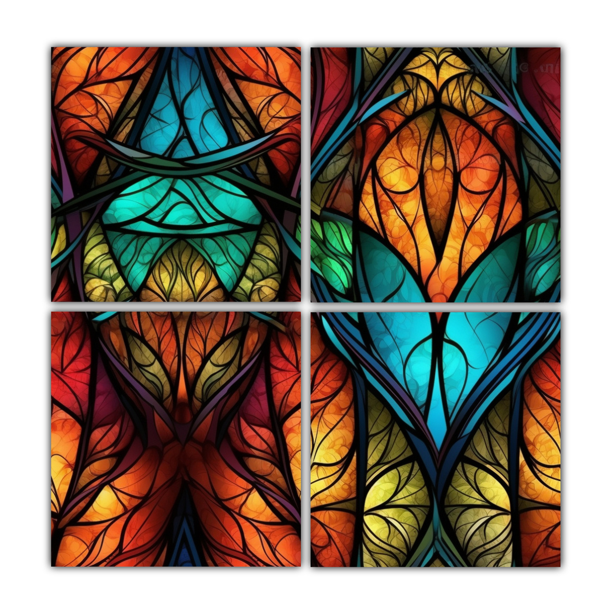 Cuatro Composición Patron Intenso Elegante Pintura Decorativa De Diseño De Vidrieras Abstractas