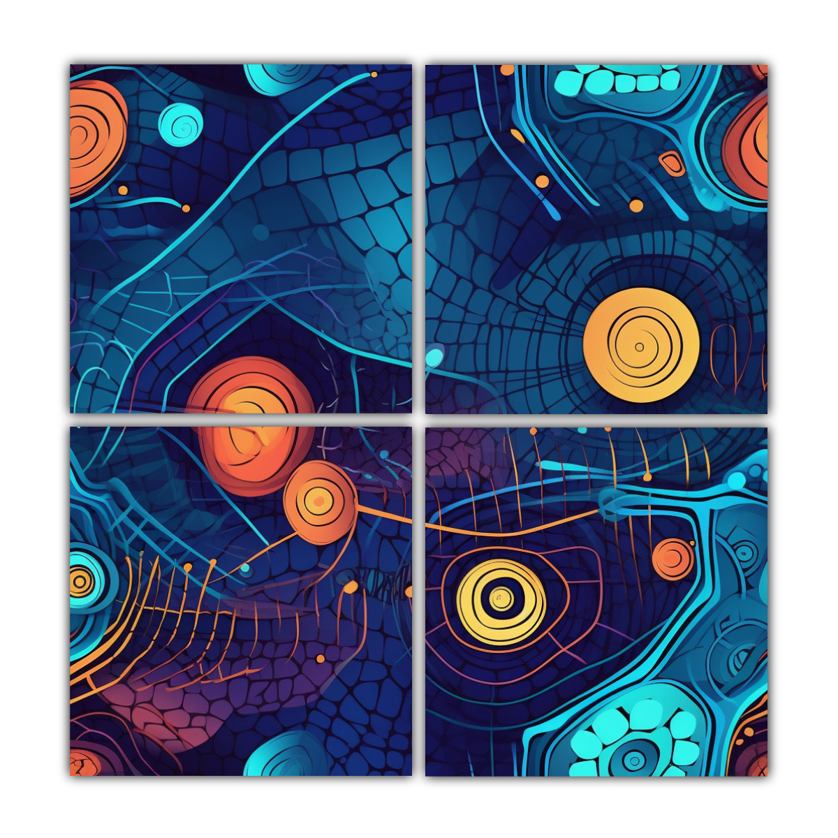 Decora tus espacios con los Cuatro Composiciones Estilo Galería Elegancia colores llamativos de DecoCuadros Alta calidad, diseños exclusivos y precios bajos Envíos express a regiones