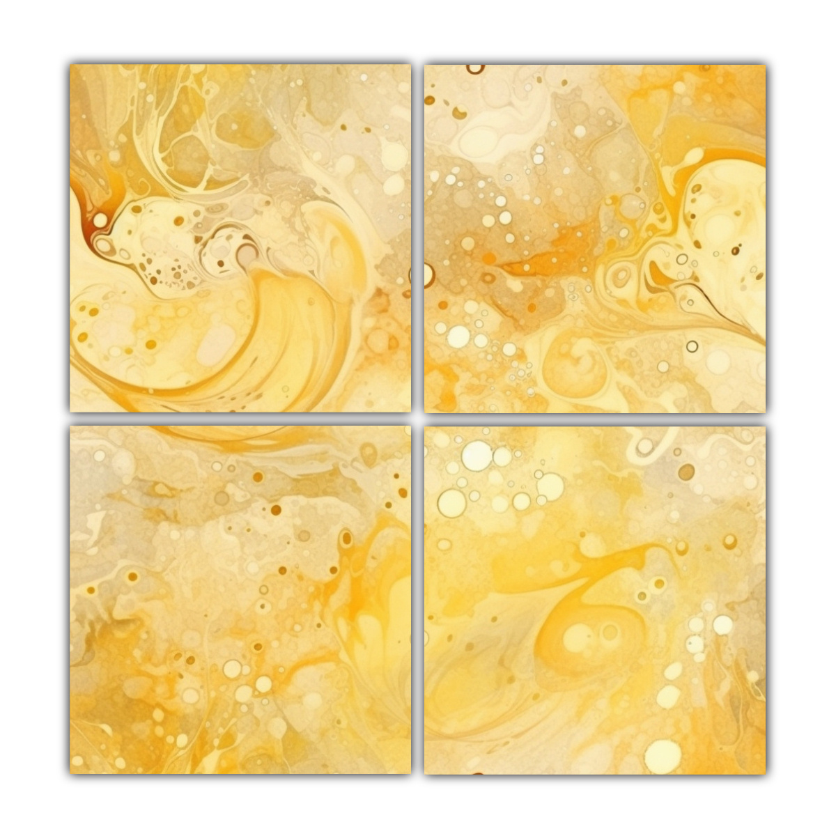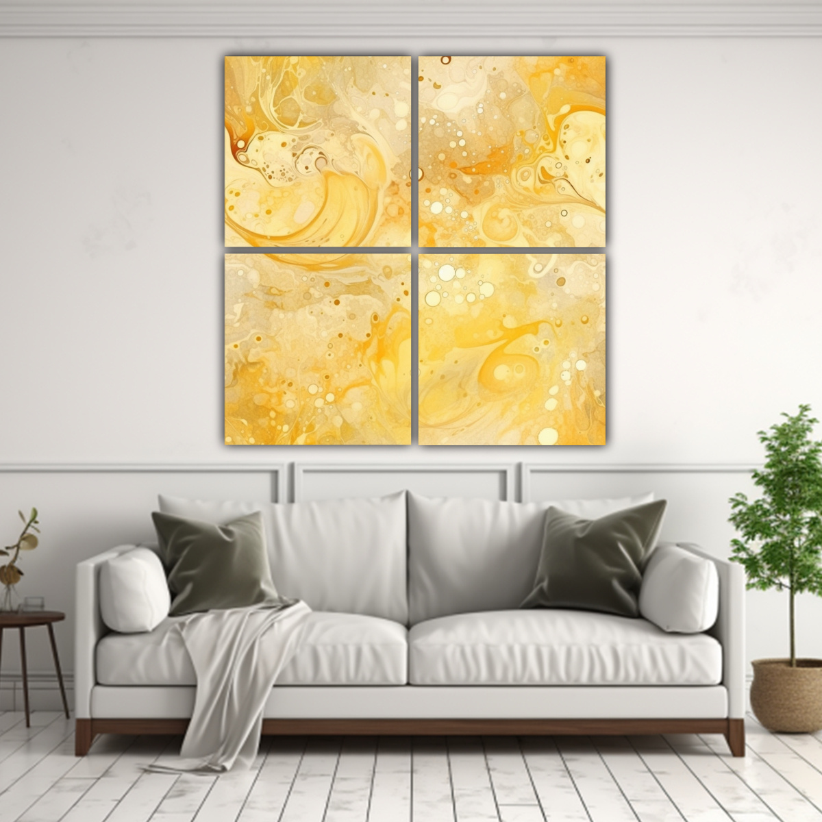Cuatro Cuadros Composición Amarillo Y Crema En Medios Mixtos Líquidos.