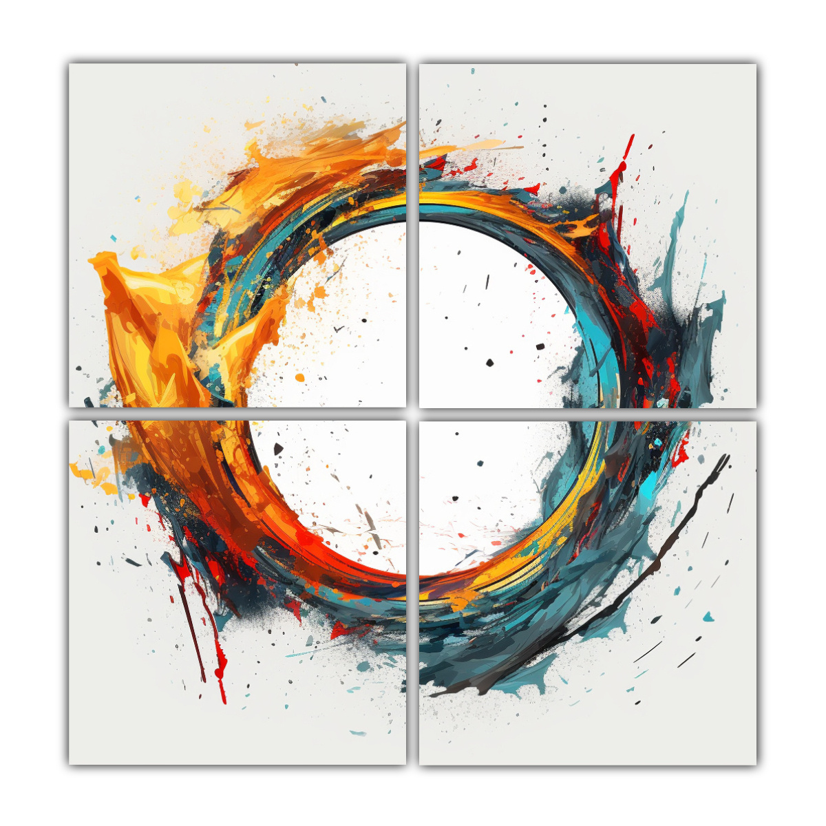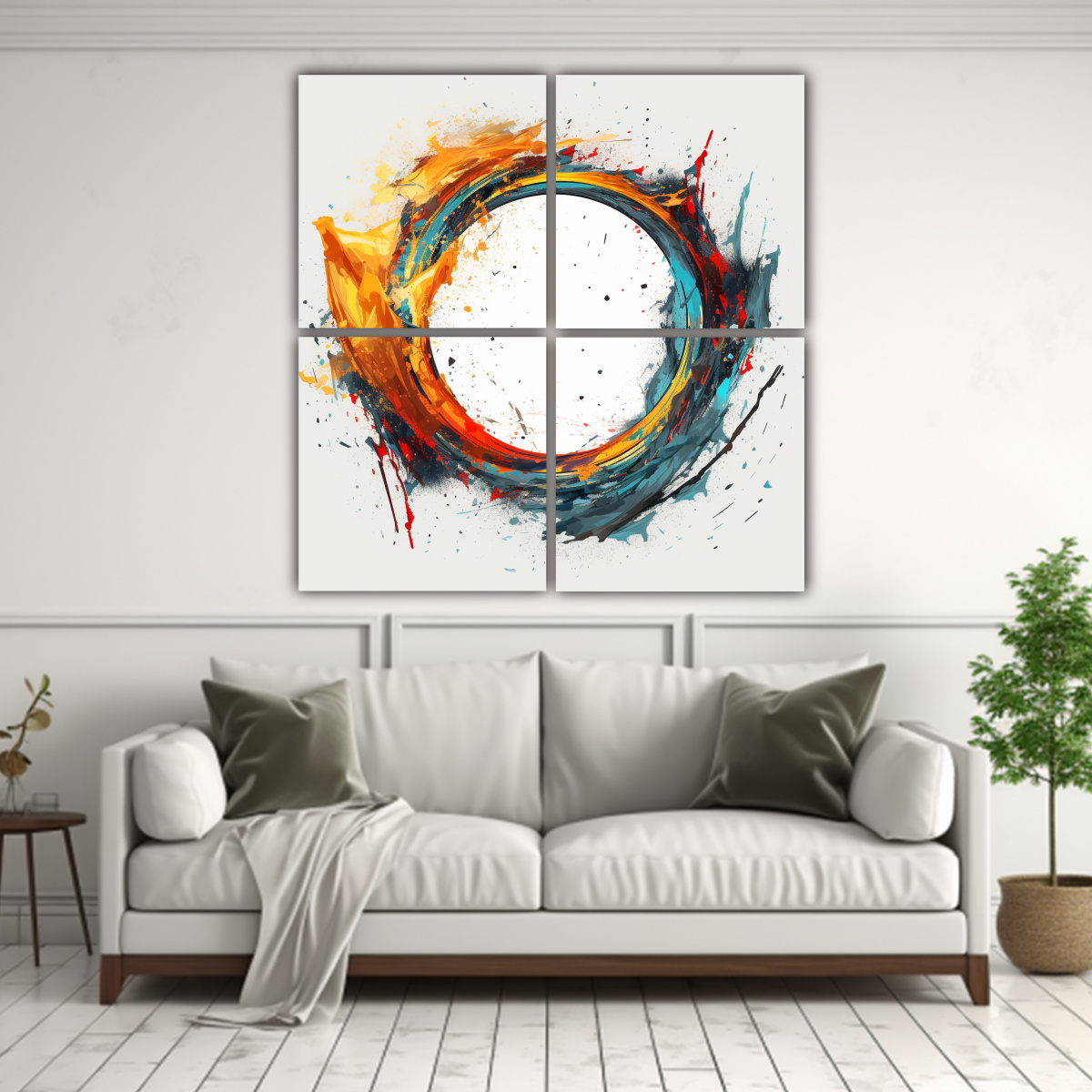 Cuatro Cuadros Decorativos En Bastidor De Madera Con Círculos Abstractos En Lienzo