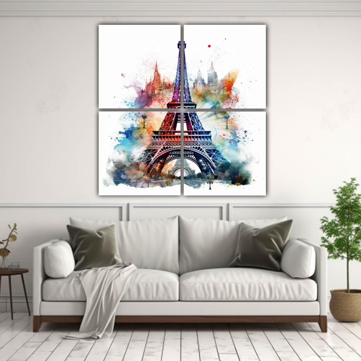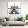 Cuatro Cuadros Forma Mural Eiffel Tower En Acuarela