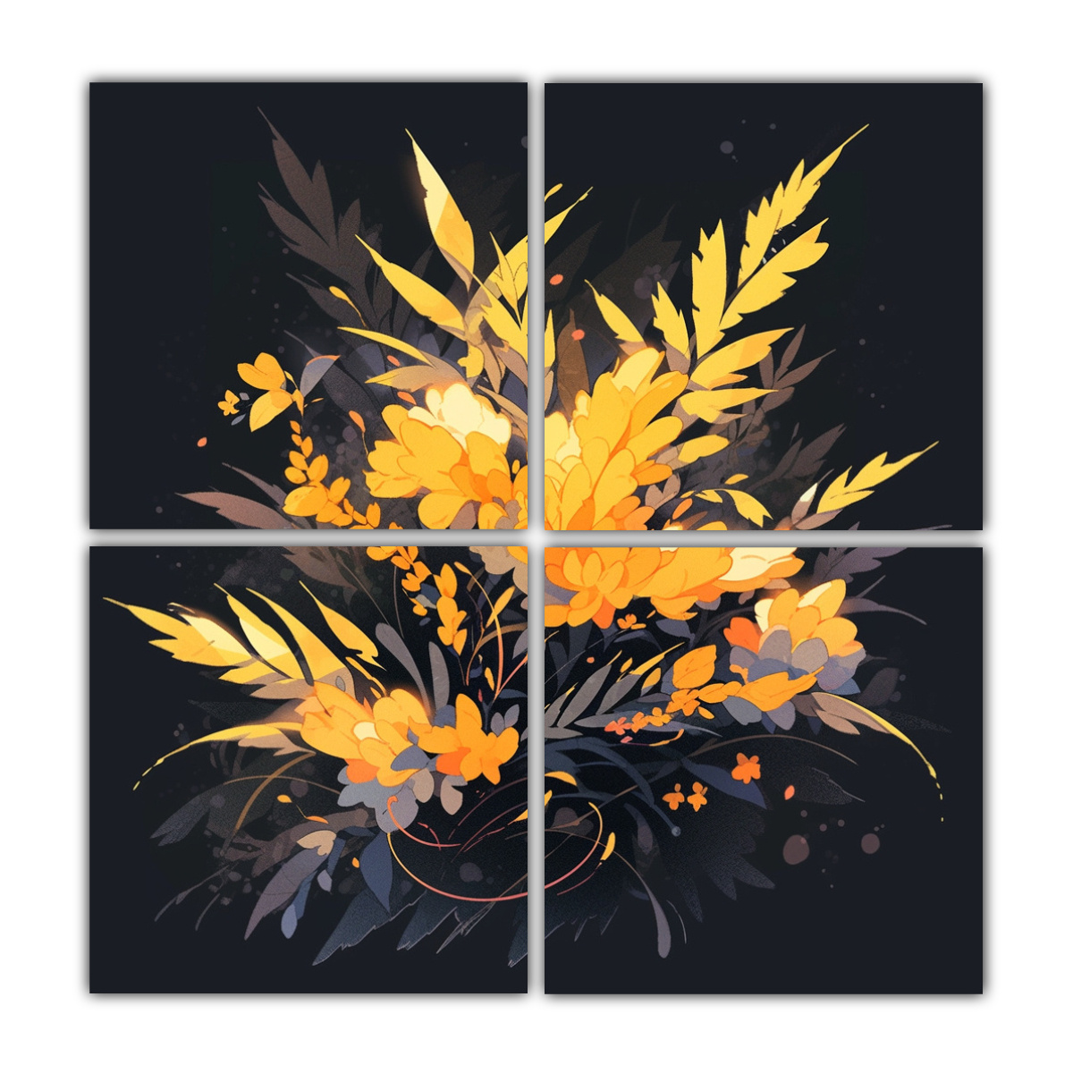 DecoCuadros – Cuatro Cuadros Fotografía Visual Yellow Colors Neo-noir atmosphere In the style of medium
