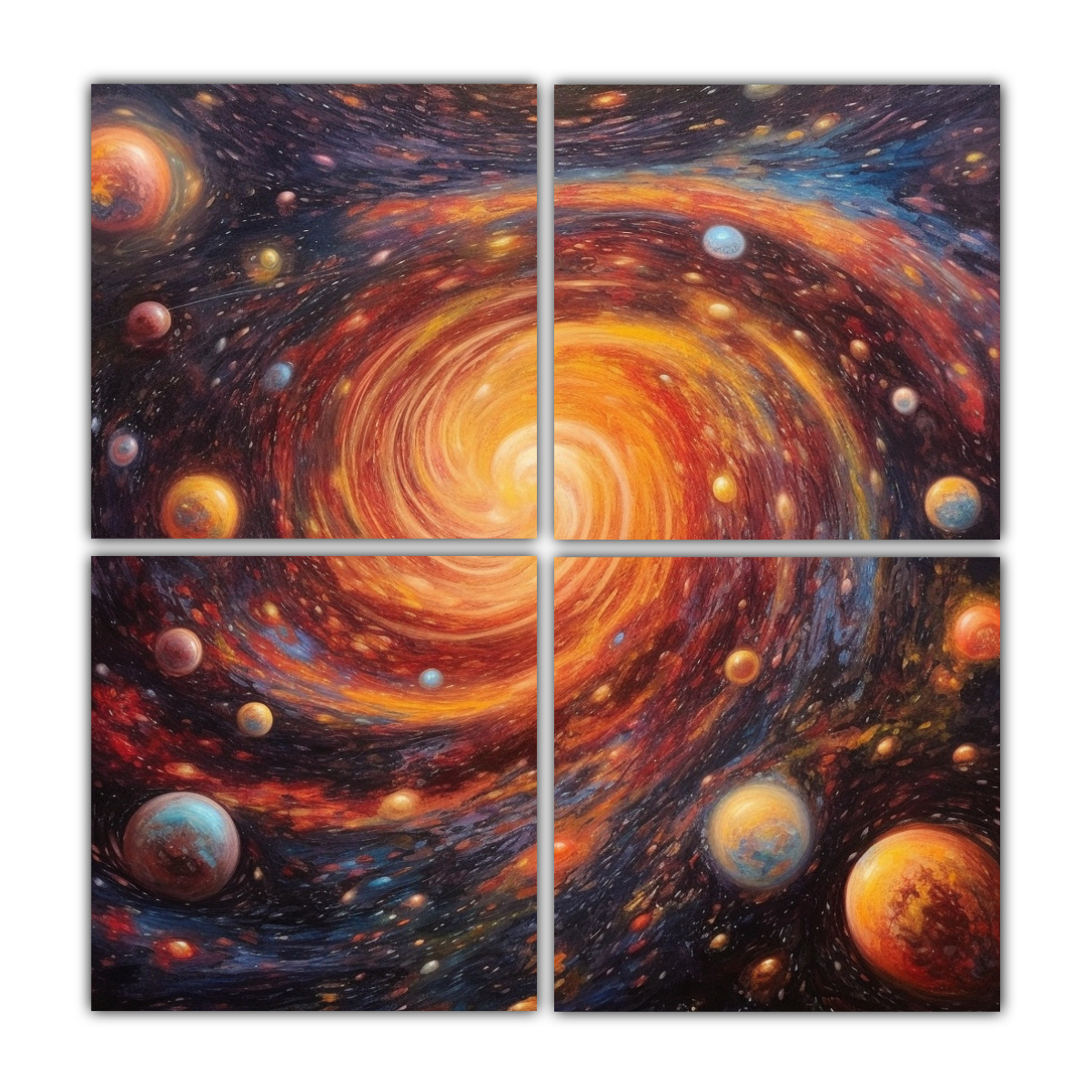 Cuatro Cuadros Tema Urbano Una Danza Cósmica Fascinante De Galaxias Y Negro