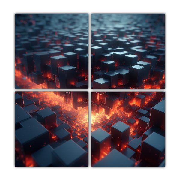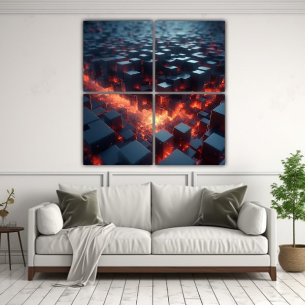Este cuadro es perfecto para colocarlo en tu sala de estar, creando un punto focal en la pared principal Su combinación de colores le dará vida y alegría al espacio, mientras que su diseño abstracto en 3D añadirá profundidad y estilo a la decoración ¡Atrévete a darle un toque moderno y vanguardista a tu hogar con estos Cuatro Lienzos Abstractos en 3D!