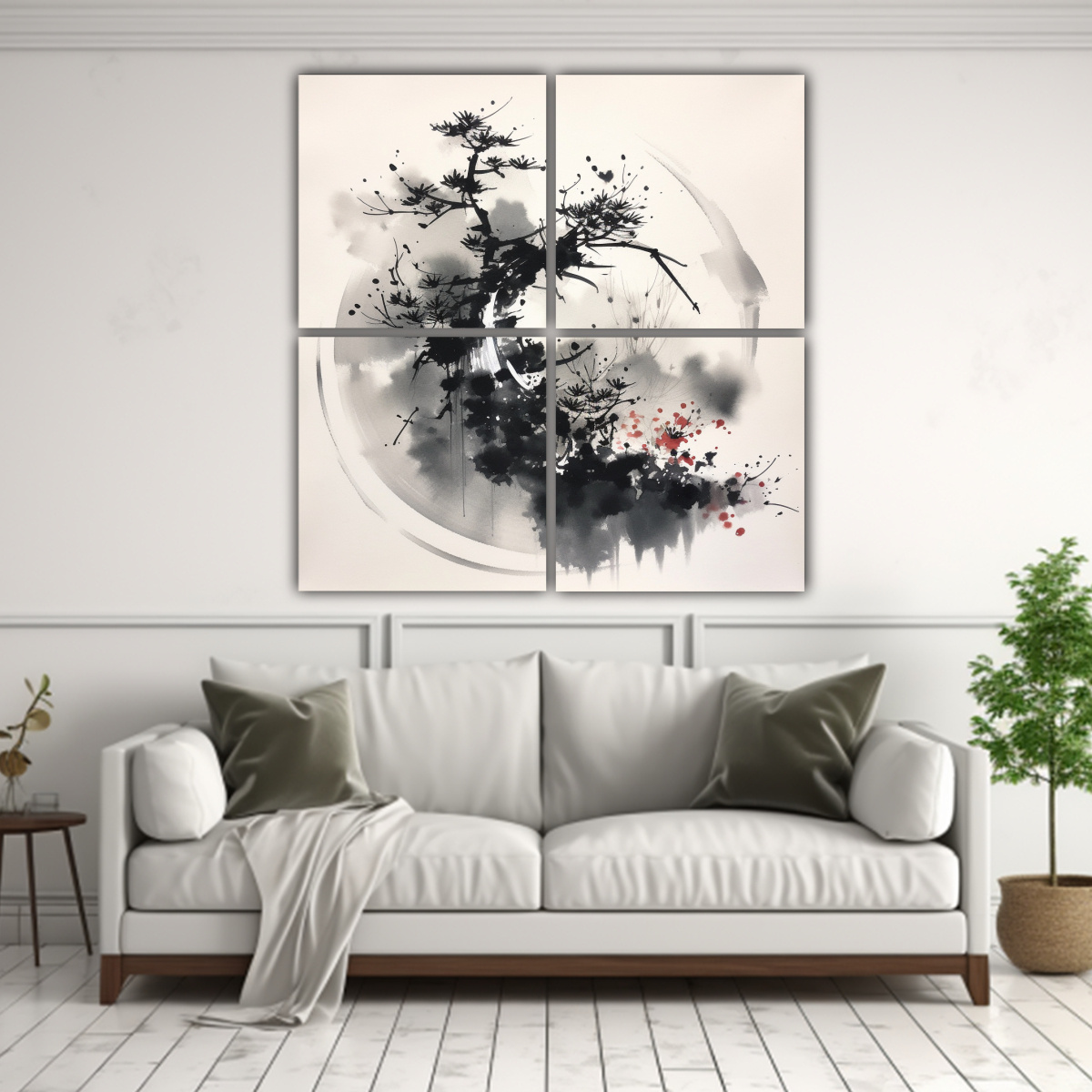 Este cuadro Cuatro Lienzos Alta Calidad para Pintura Japonesa Tradicional de Tinta Armonía sería perfecto para decorar tu sala de estar o tu estudio Su combinación de tonos Azul Marino grisaceo, Beige, Gris, Plateado y Lila brindará una sensación de armonía y tranquilidad en el ambiente Colócalo en una pared libre de distracciones para resaltar su belleza y utiliza muebles de estilo minimalista para crear un espacio moderno y sofisticado