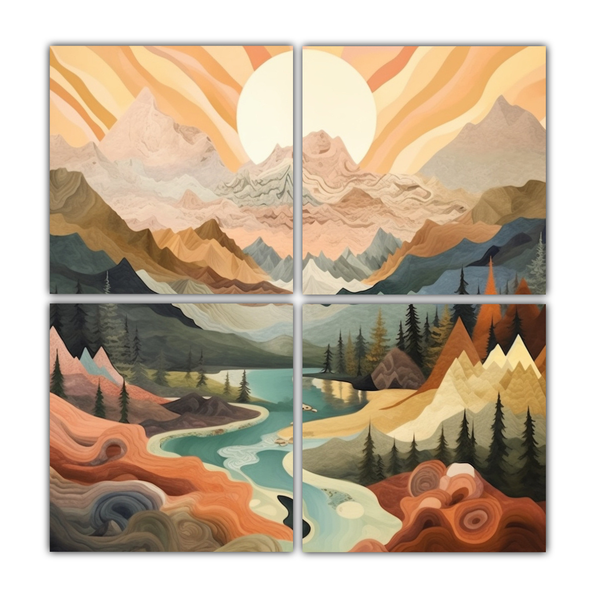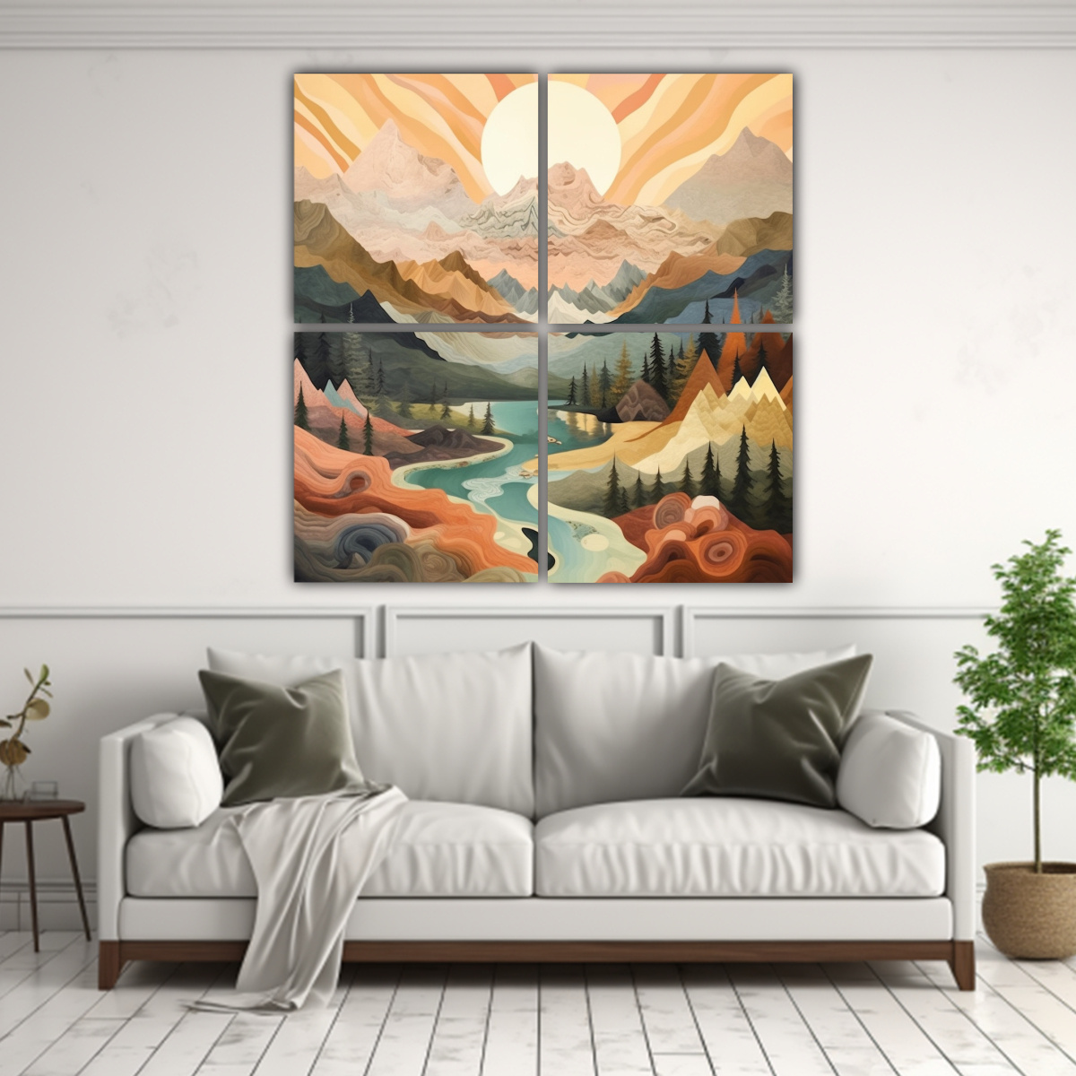 Cuatro Lienzos Composición Original Paisajes De Yoga Curativo Tonos Tierra Montañas