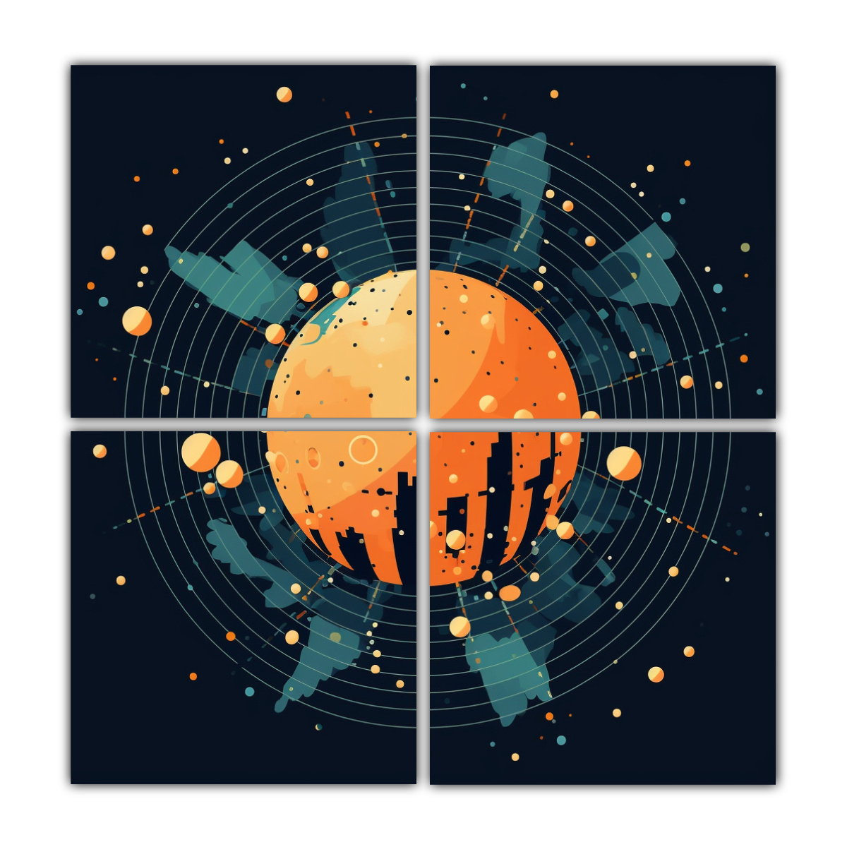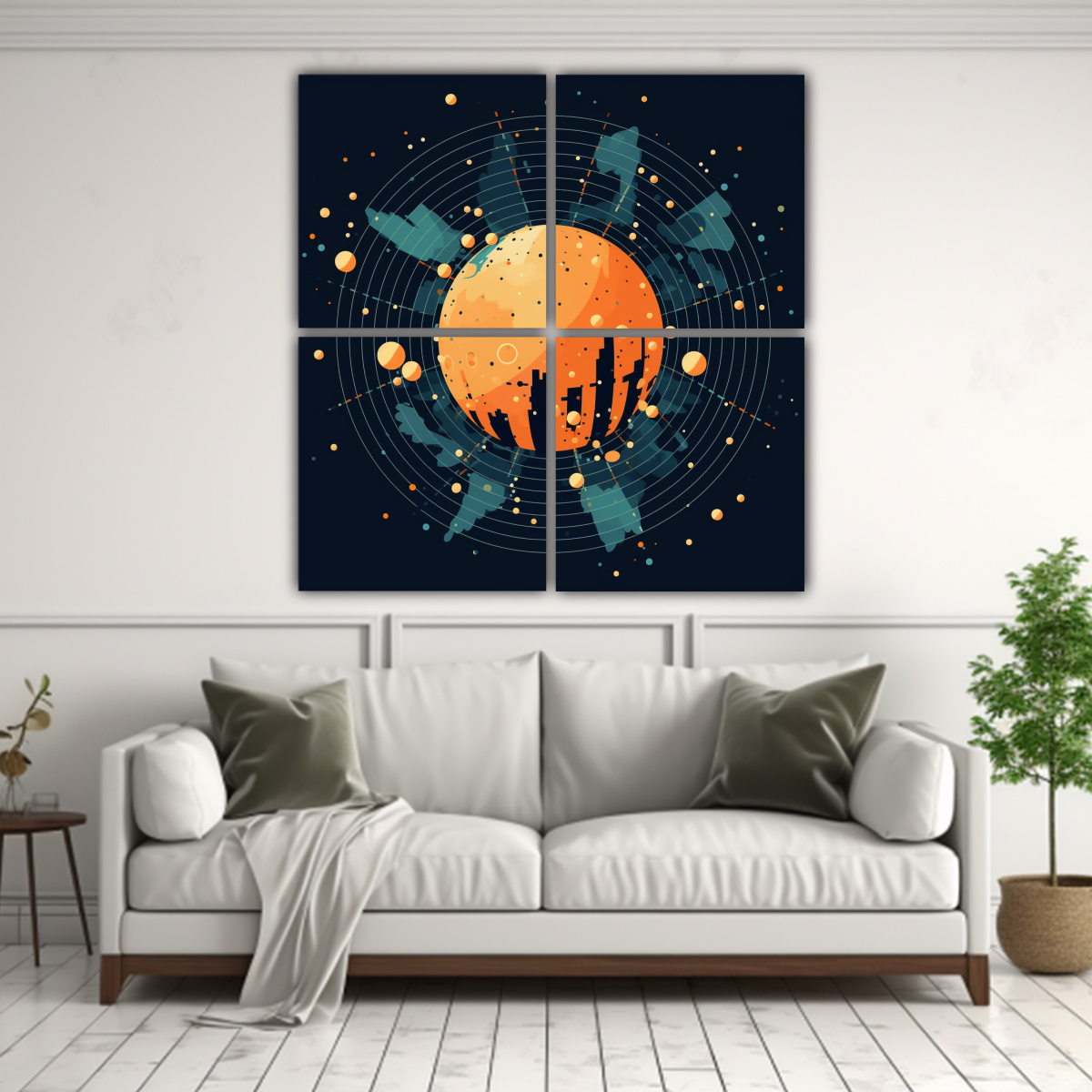 Decora tu salón con estilo gracias a nuestros Cuatro Lienzos de Decoración para el Salón en coral, negro, gris, verde azulado, plateado, azul marino grisáceo y chocolate Nuestros cuadros decorativos impresos en tela de alta calidad con bastidores de madera son ideales para darle un toque moderno a tu hogar ¡Aprovecha nuestra oferta de envío gratis en Santiago y envíos express a regiones!