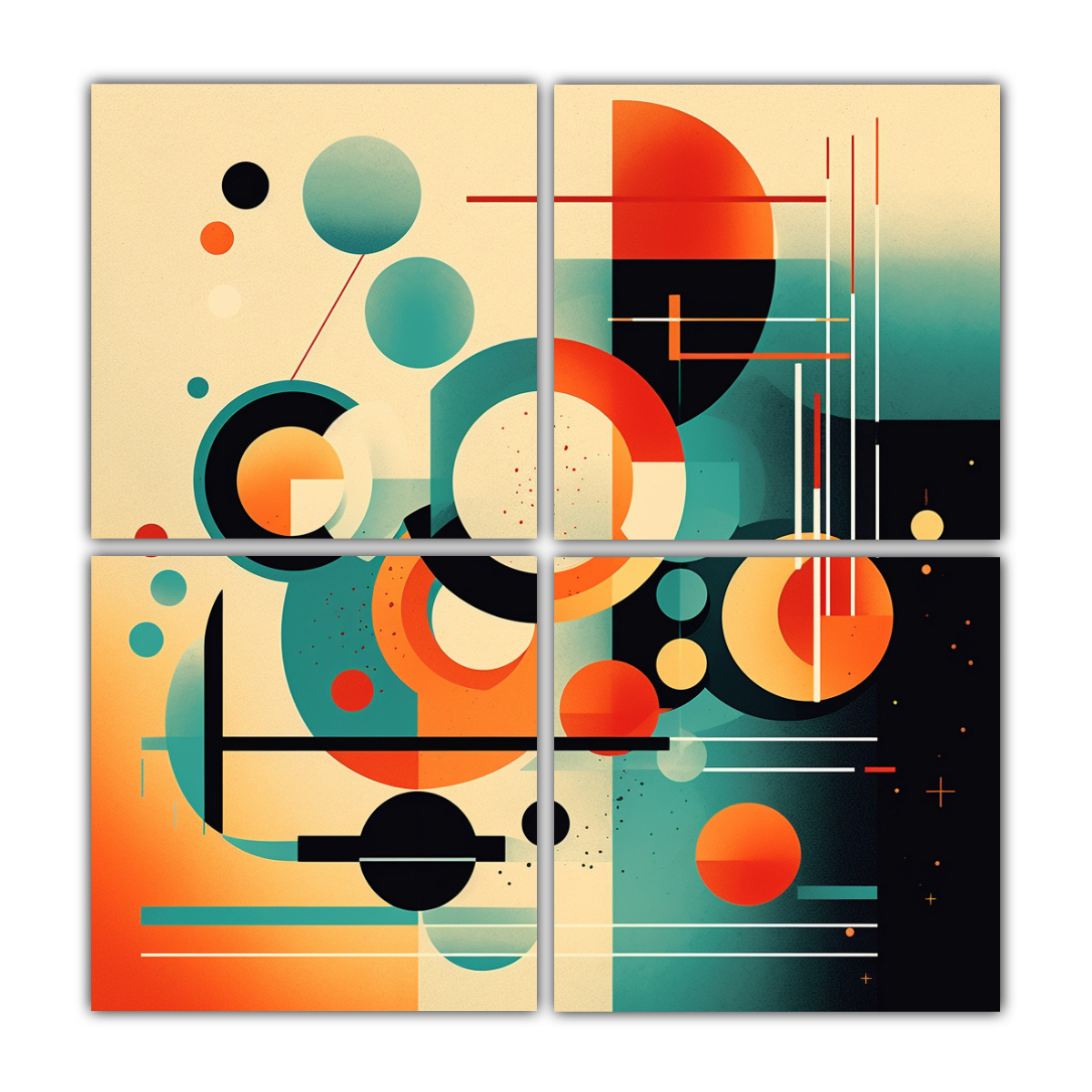 DecoCuadros tiene los mejores precios del mercado en cuadros decorativos impresos en tela de alta calidad con bastidores de madera Nuestro cuadro ‘Cuatro lienzos de tela con diseño gráfico abstracto de la era atómica’ combina los colores amarillo claro, rojo, negro, menta, coral, verde azulado y gris para crear un diseño moderno y vanguardista Con entregas rápidas y gratuitas en Santiago y envíos express a regiones, somos la mejor opción para decorar tus espacios